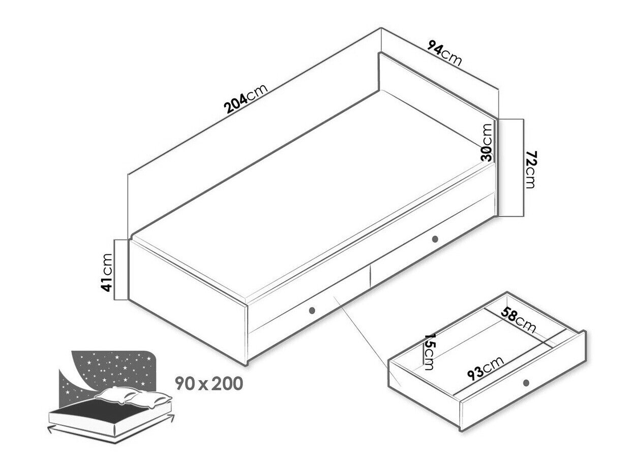 - 90 x 200 cm