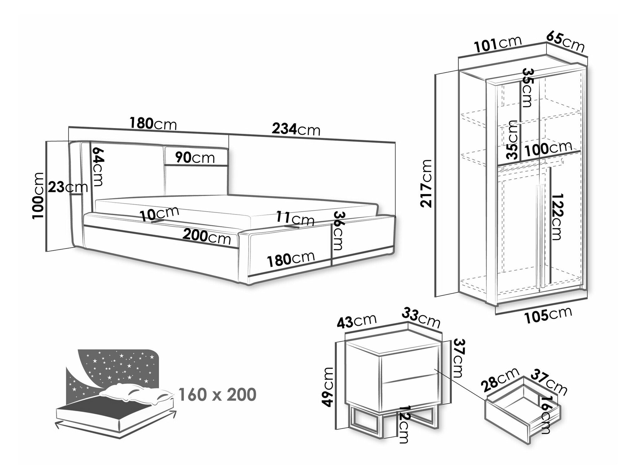 Åbn døre og skuffer med et enkelt tryk. "Push to open"-systemet består af en kombination af en fjeder og en magnetisk mekanisme til at trykke og holde døren. Også hængsler med særlige trykfjedre til at åbne døren. Takket være denne mekanisme har møblerne ikke brug for håndtag. Du kan åbne og lukke døre og skuffer med et enkelt klik.