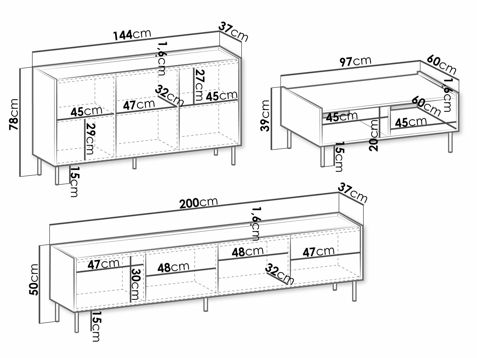 78 x 144 x 37 cm