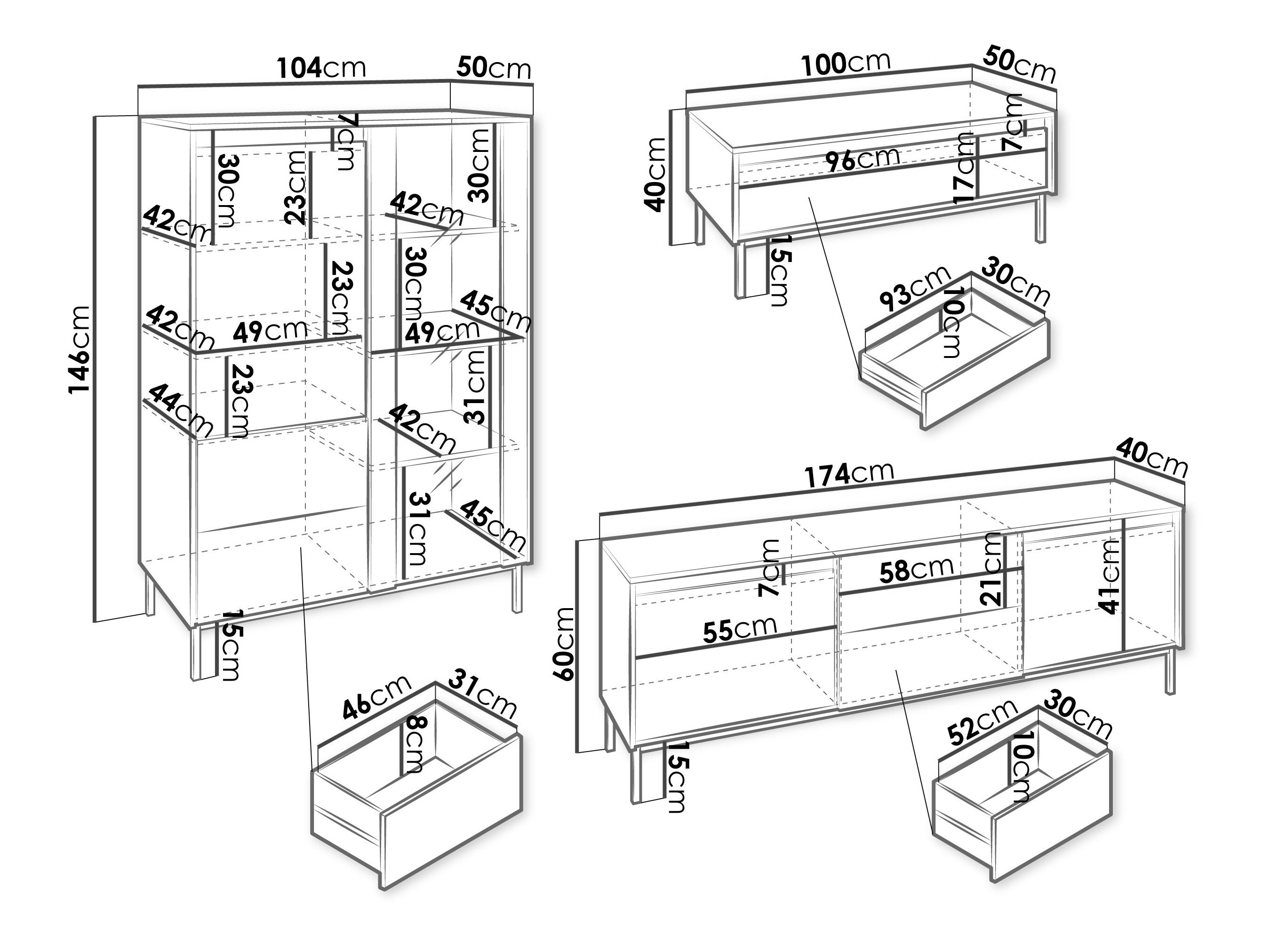146 x 104 x 50 cm