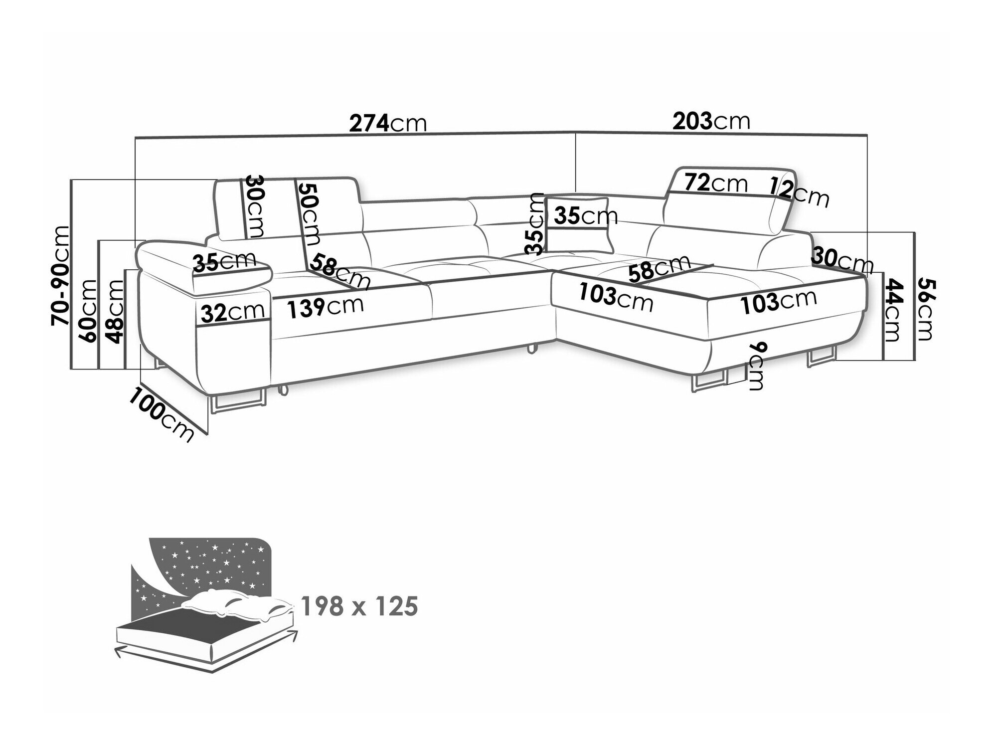 Når du ser på sofaen forfra, vil den forlængede del af venstre-varianten være på din venstre side. Den valgte hjørnevariant bør forbedre rummets flow og gøre det let at bevæge sig rundt i rummet.