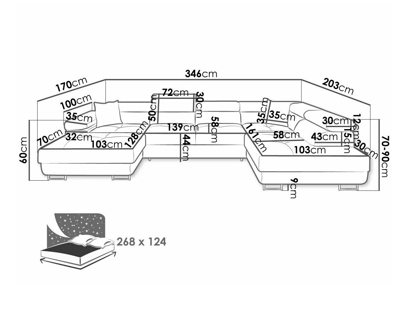 70 cm  346 cm  203 cm