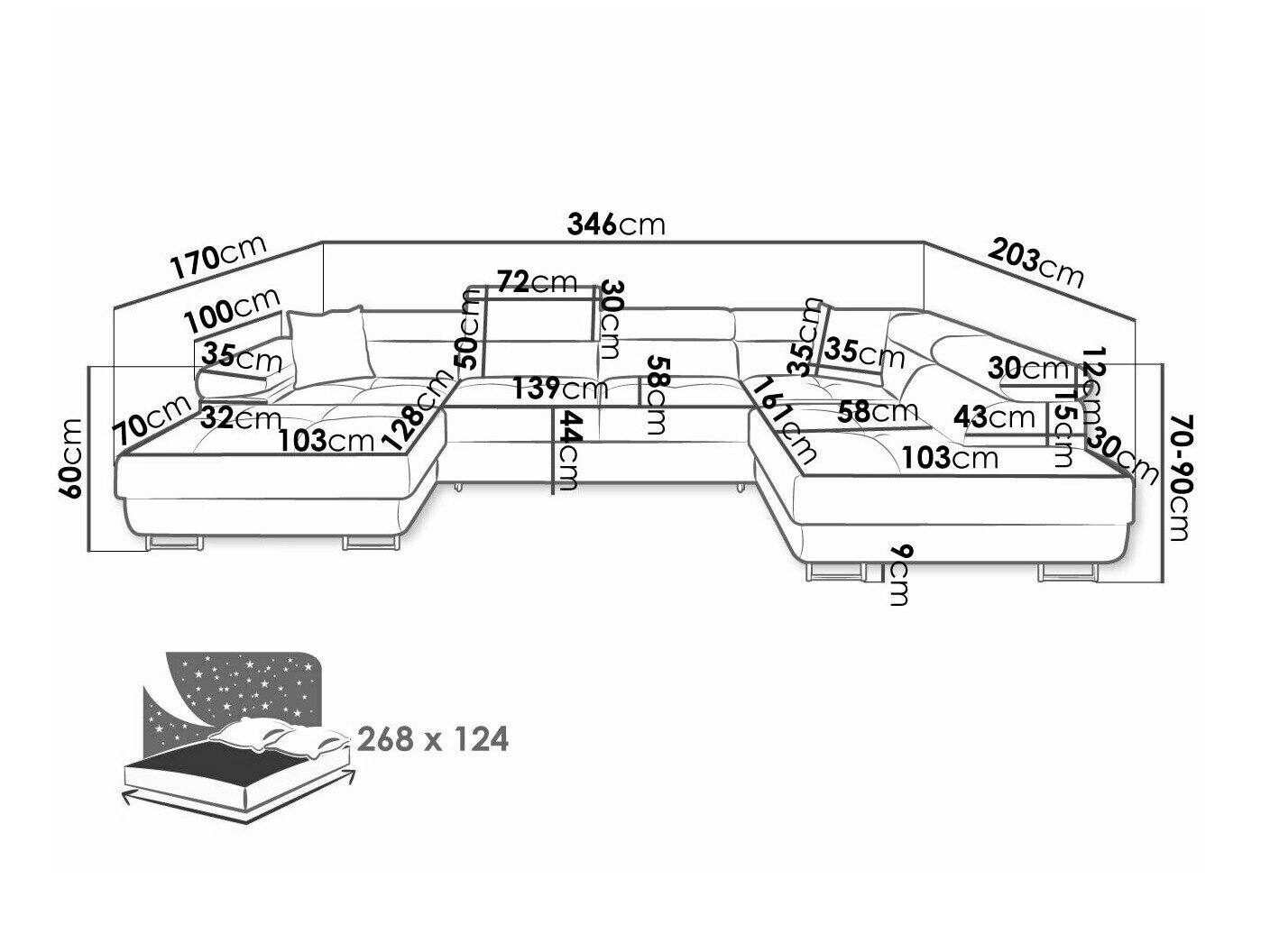70 cm  346 cm  203 cm