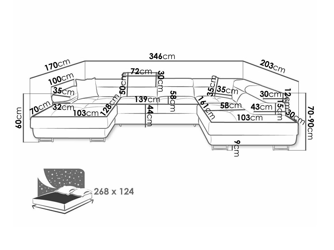 70 cm  346 cm  203 cm