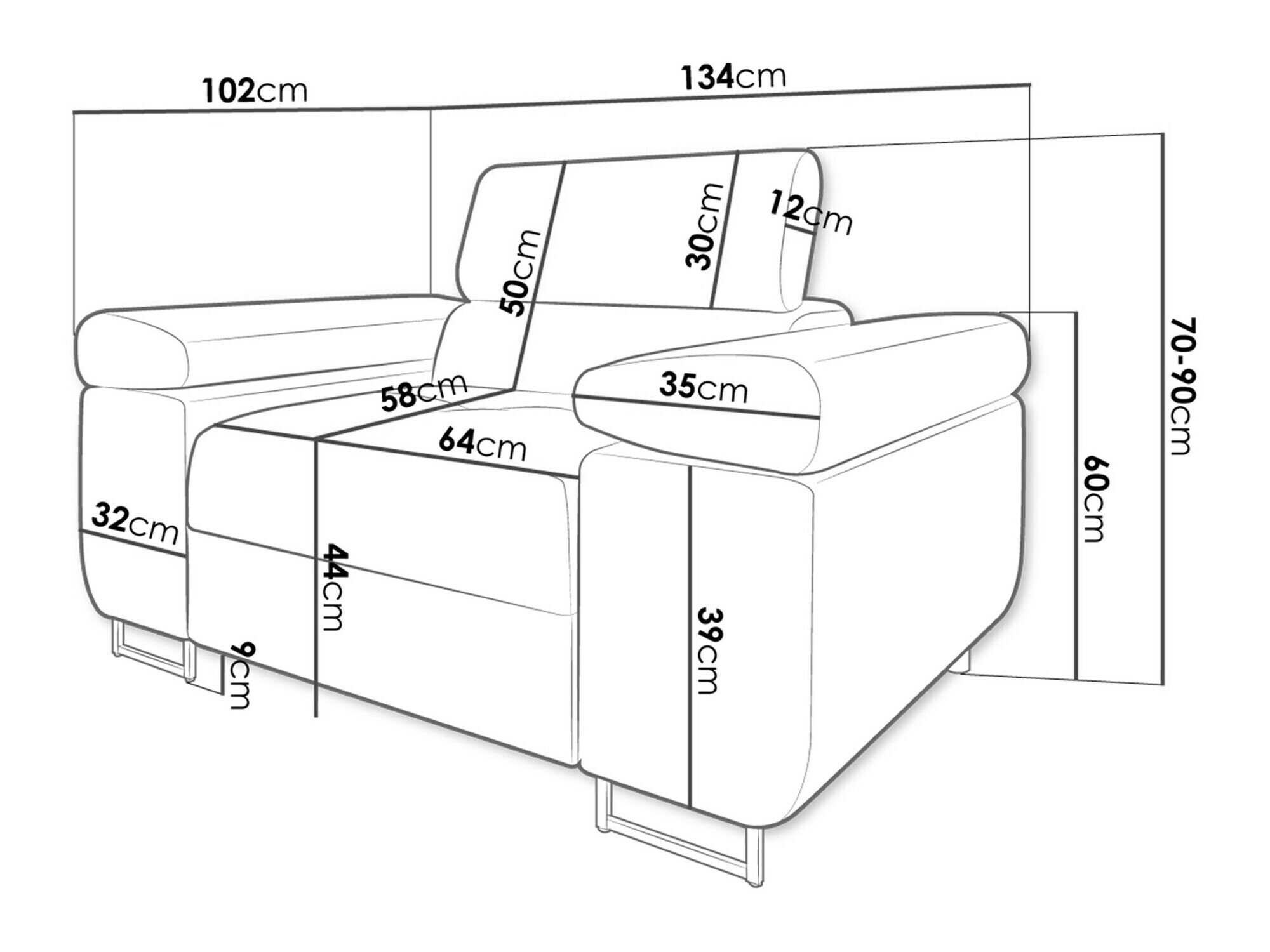 70 cm  134 cm  102 cm