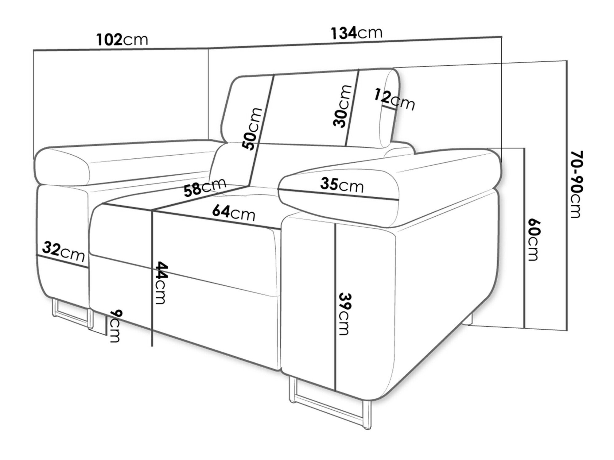 70 cm  134 cm  102 cm