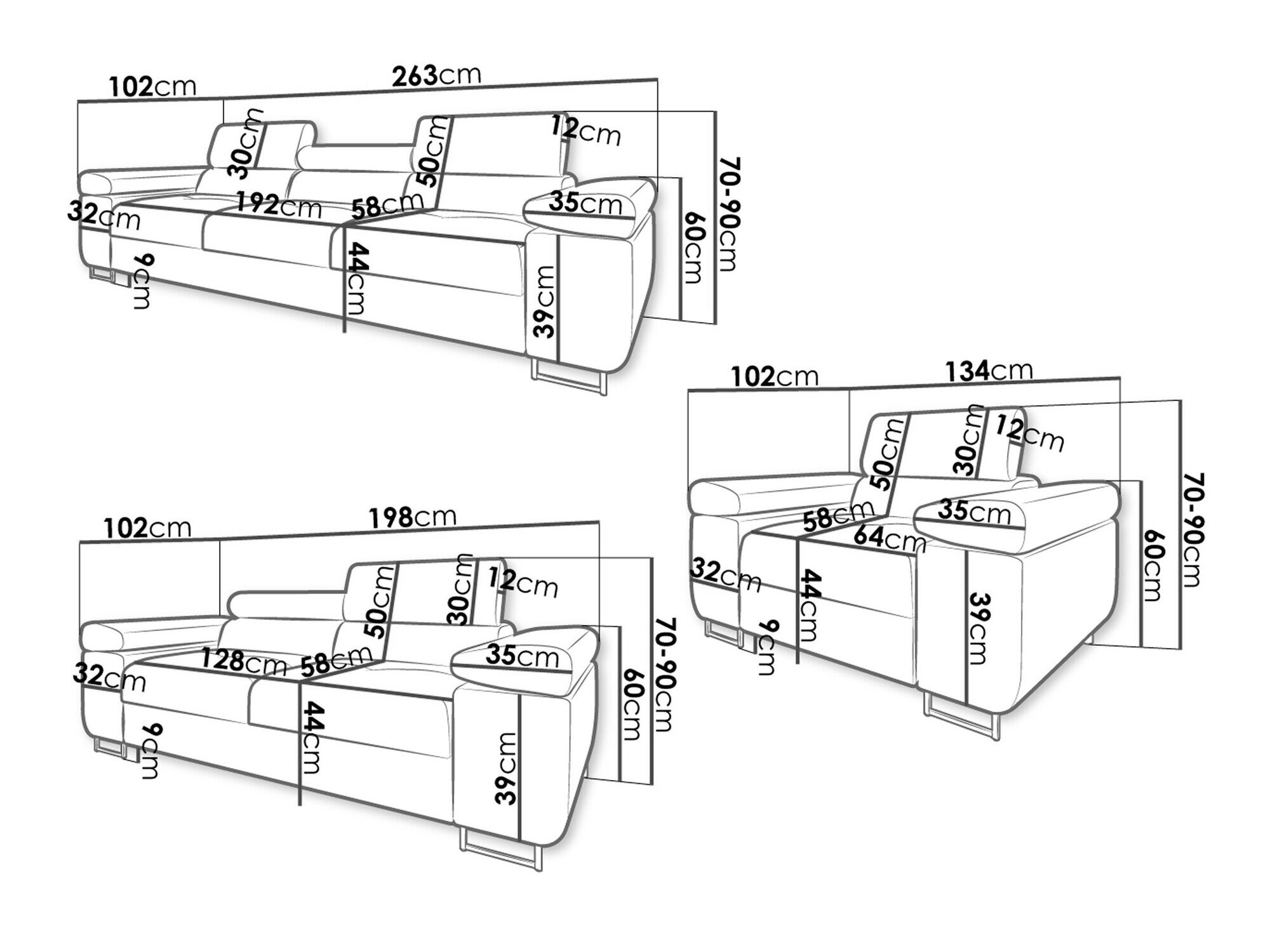 Trepersoners sofa dimensioner: