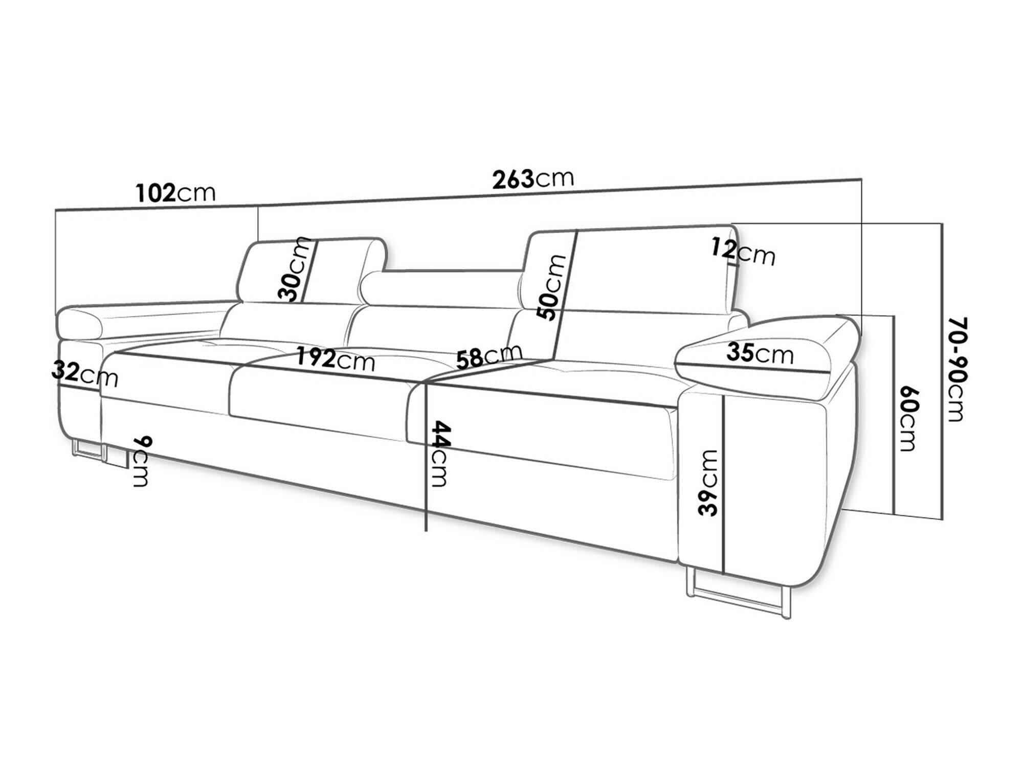 70 cm  263 cm  102 cm