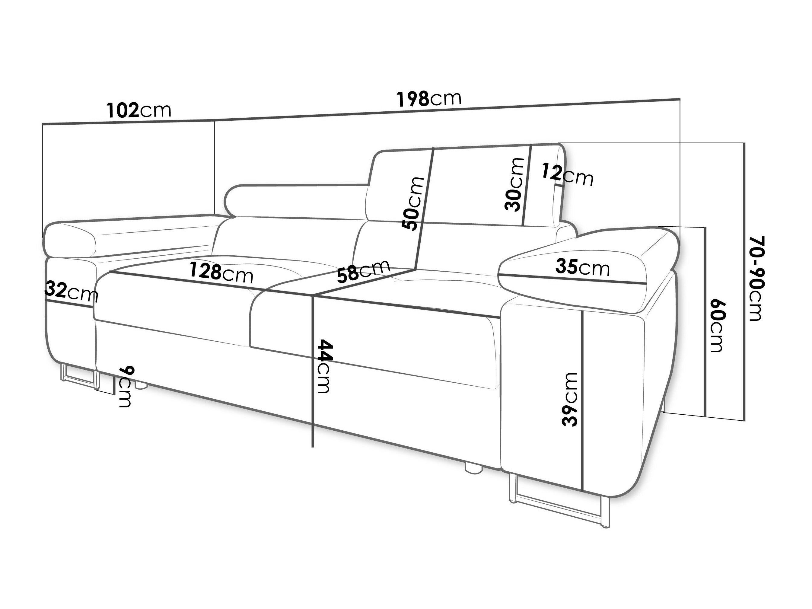 70 cm  198 cm  102 cm