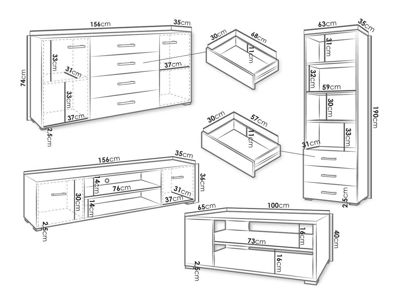 74 x 156 x 35 cm