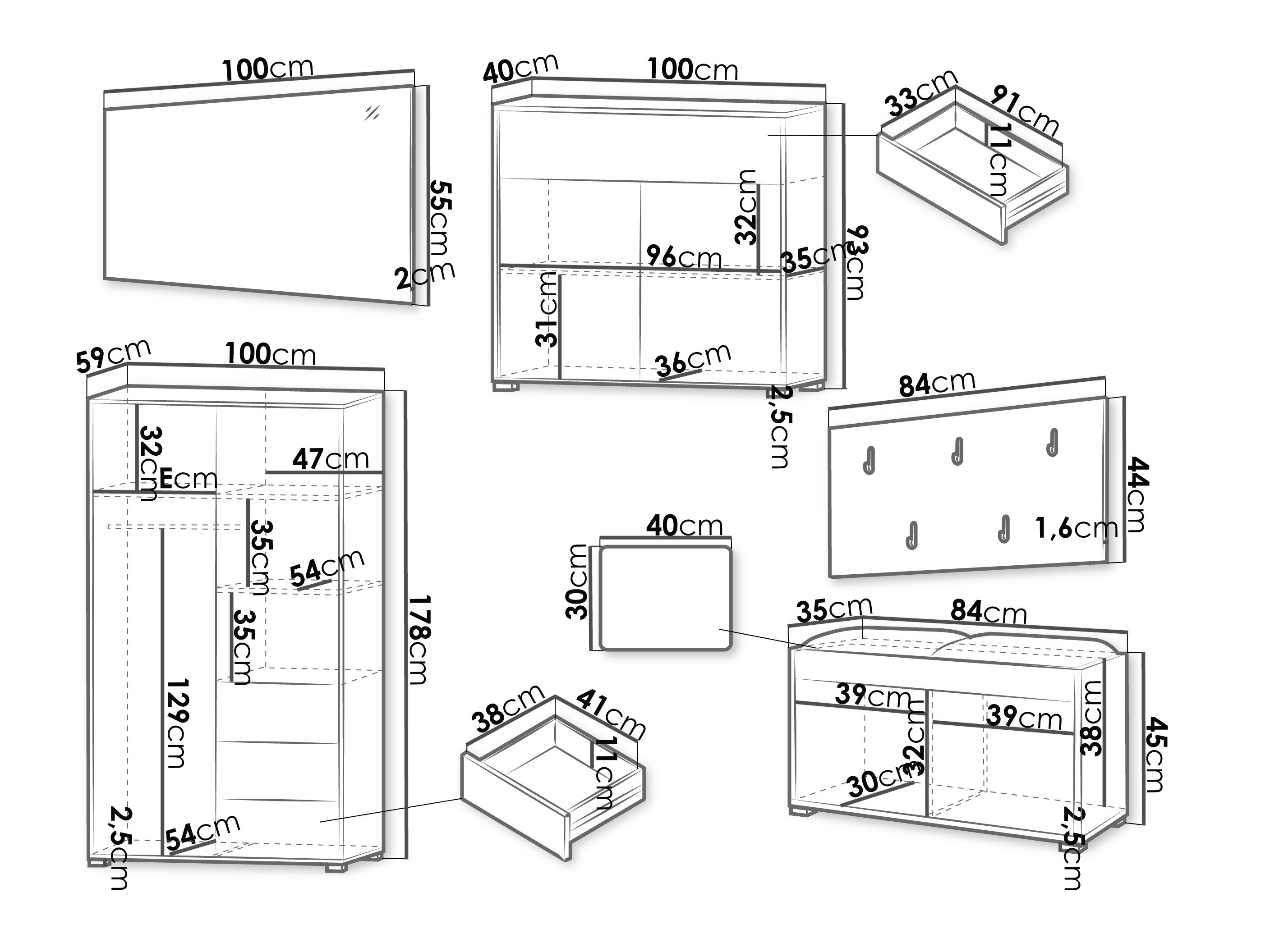 Dimensioner på garderobeskabe: