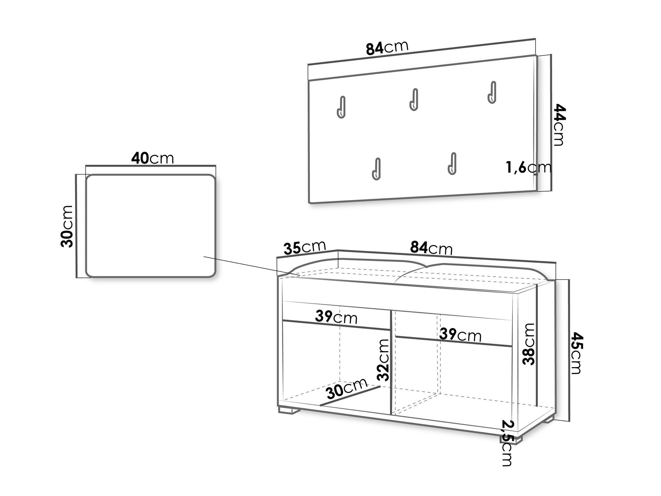 Skoskab dimensioner: