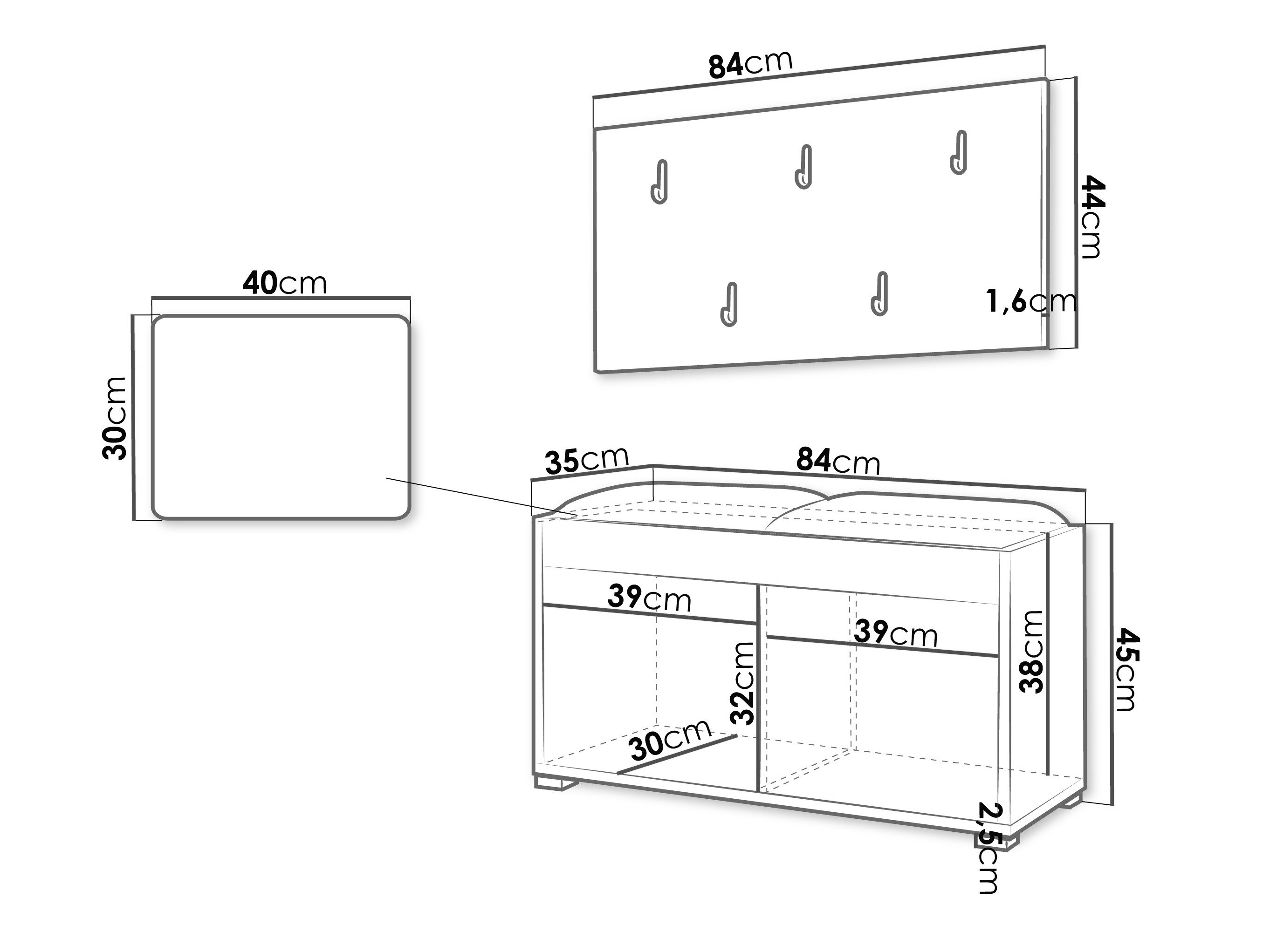 Skoskab dimensioner: