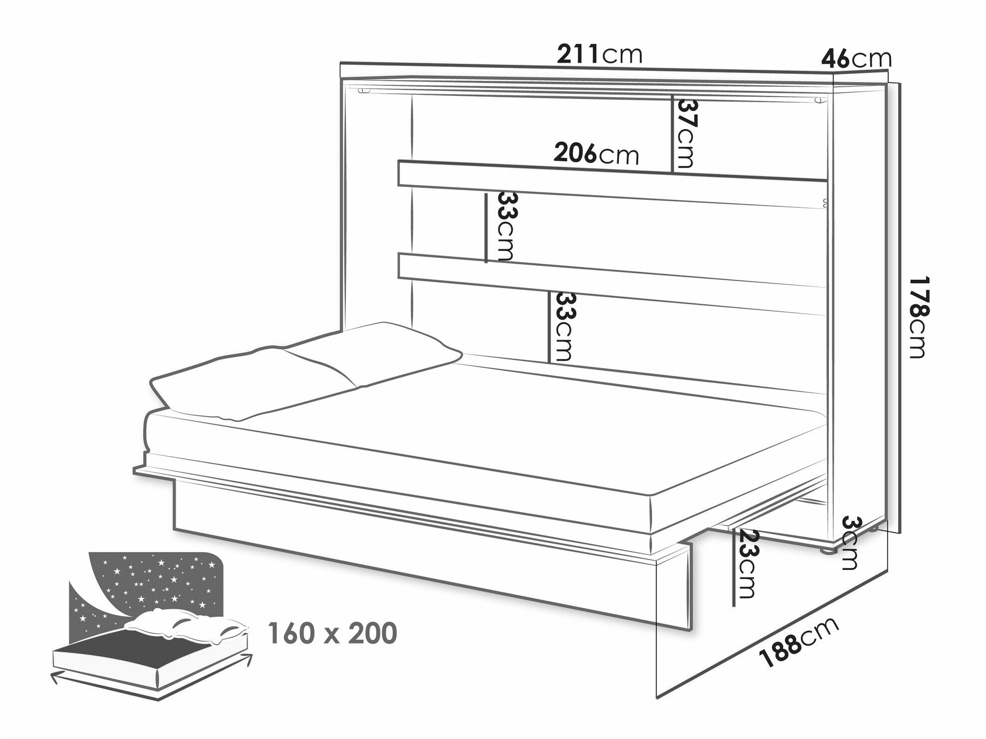 110 cm  211 cm  46 cm