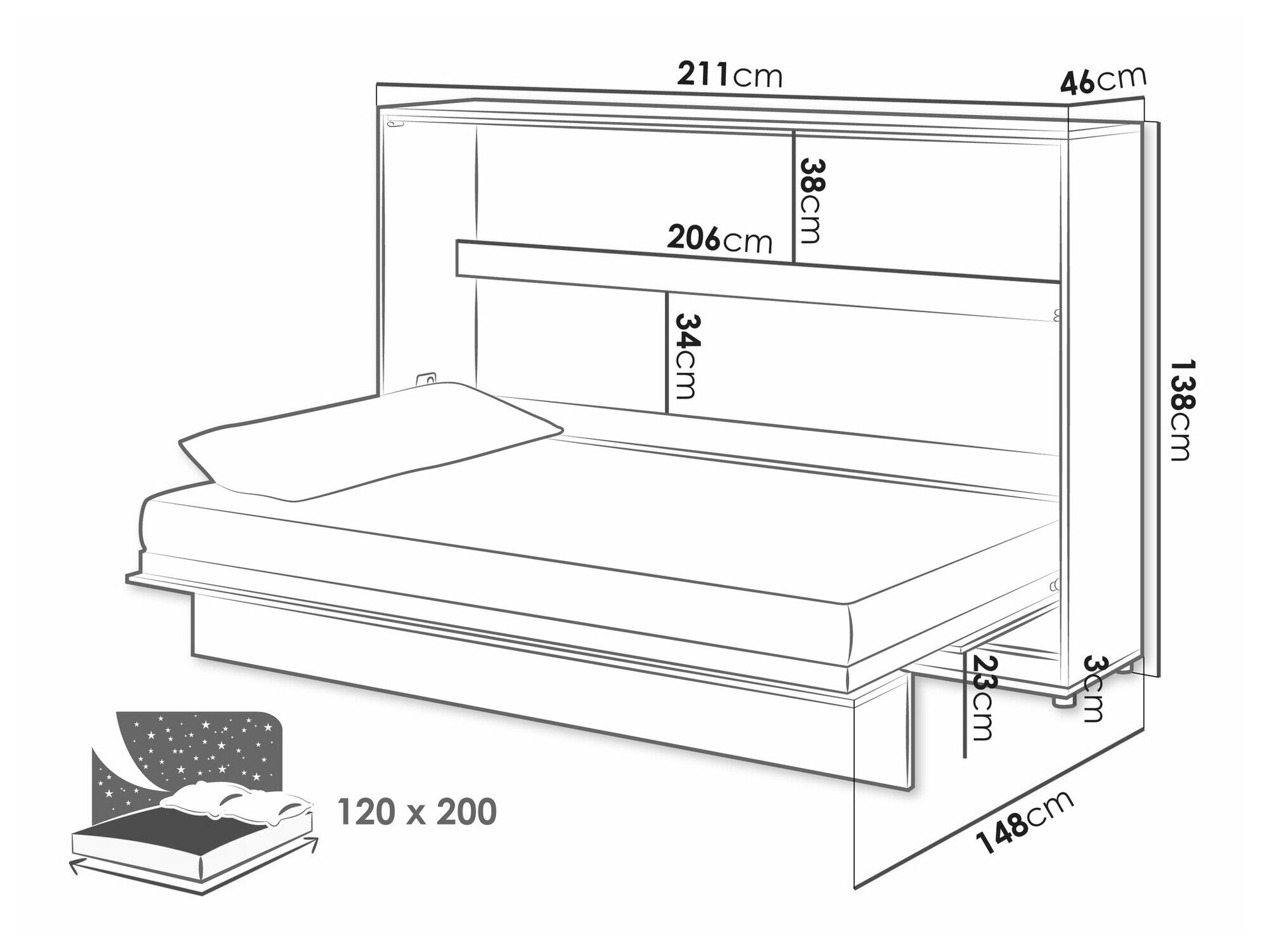 110 x 210 x 46 cm