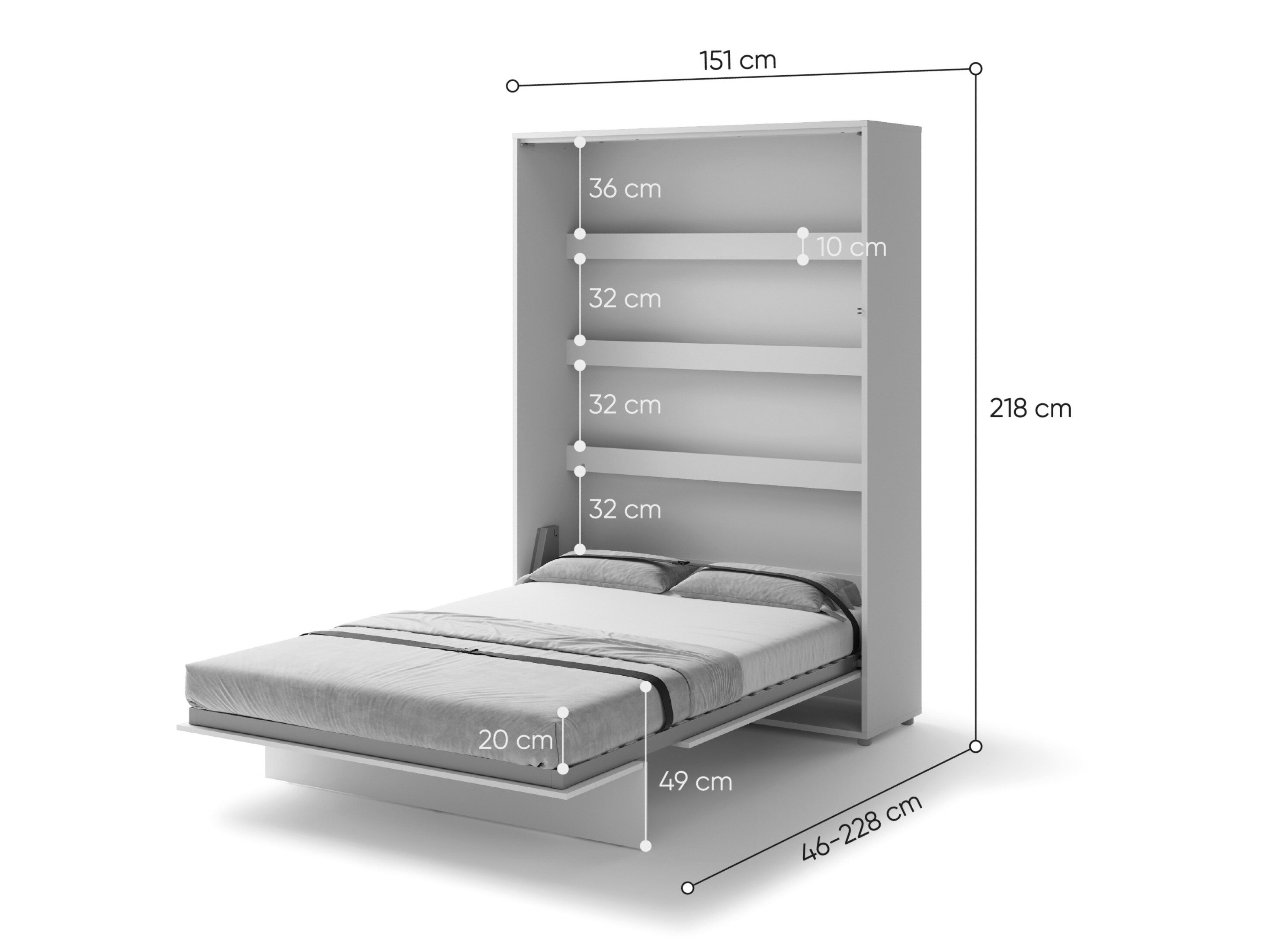 - Sengen skal fastgøres til væggen.