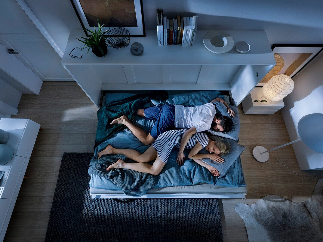 - Sengen skal fastgøres til væggen.