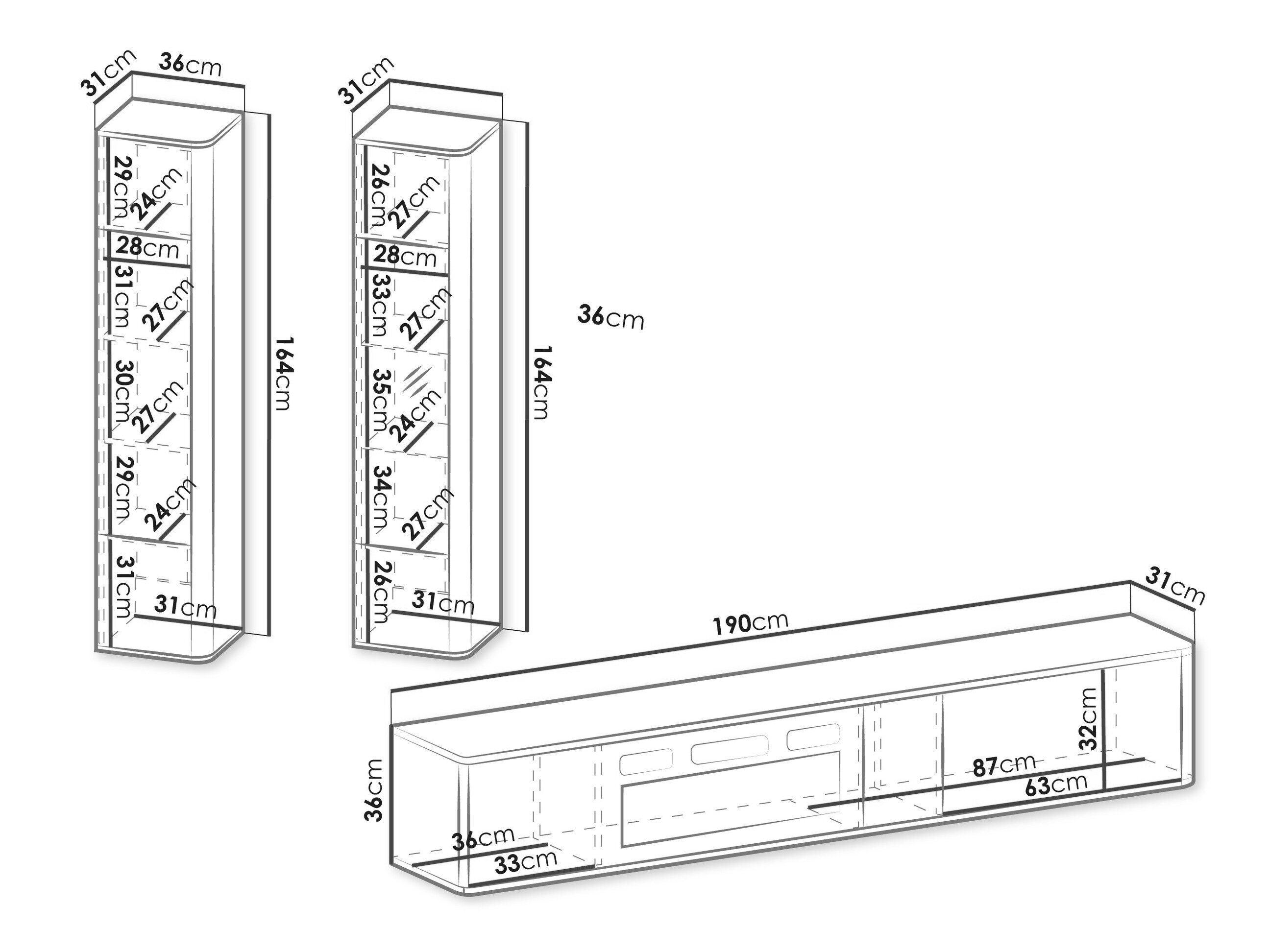 36 x 190 x 31 cm