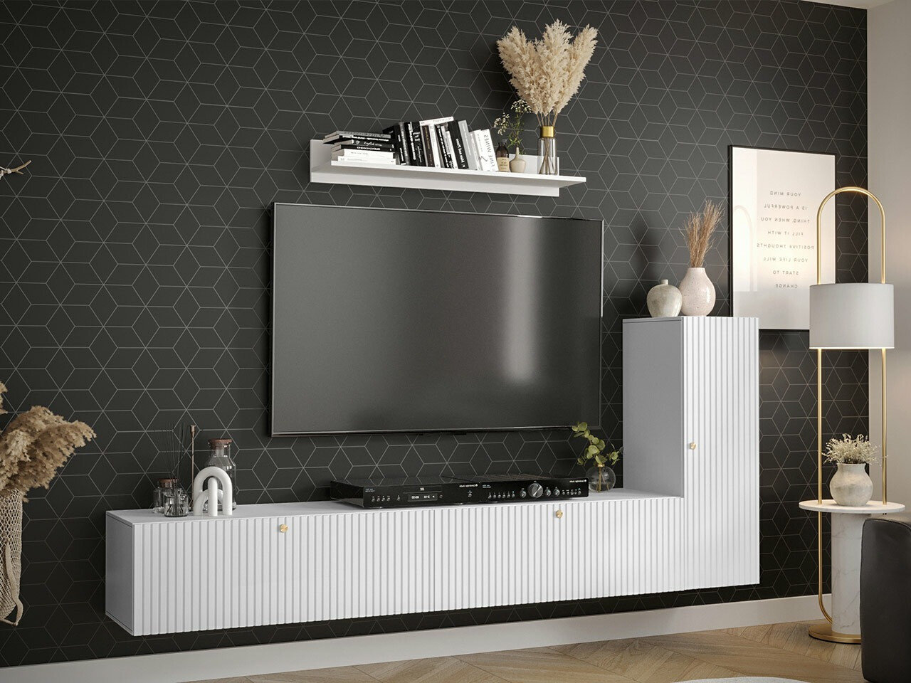 Denne kollektion er designet til dem, der søger æstetisk fleksibilitet – fri for rod og støj, med klare former og gennemtænkte løsninger, der gør hverdagen mere behagelig. Det minimalistiske design kommer til udtryk i rene linjer, diskrete overflader og nøje gennemtænkte detaljer. Rillede fronter tilføjer et unikt præg, mens en farveløs beskyttende belægning hjælper med at bevare møblernes æstetik i længere tid. Vægmonterede enheder skaber en følelse af lethed og orden, samtidig med at de gør den daglige vedligeholdelse nemmere. Dette er en kollektion, der tilpasser sig dit tempo i livet og passer harmonisk ind i både moderne og moderne klassiske interiører.