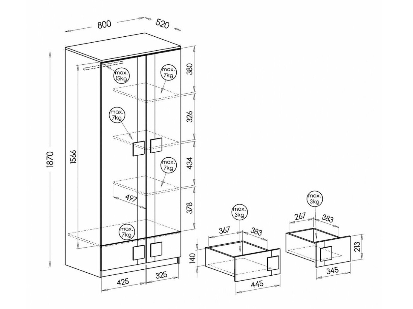 Maksimal vægtkapacitet for skuffen: