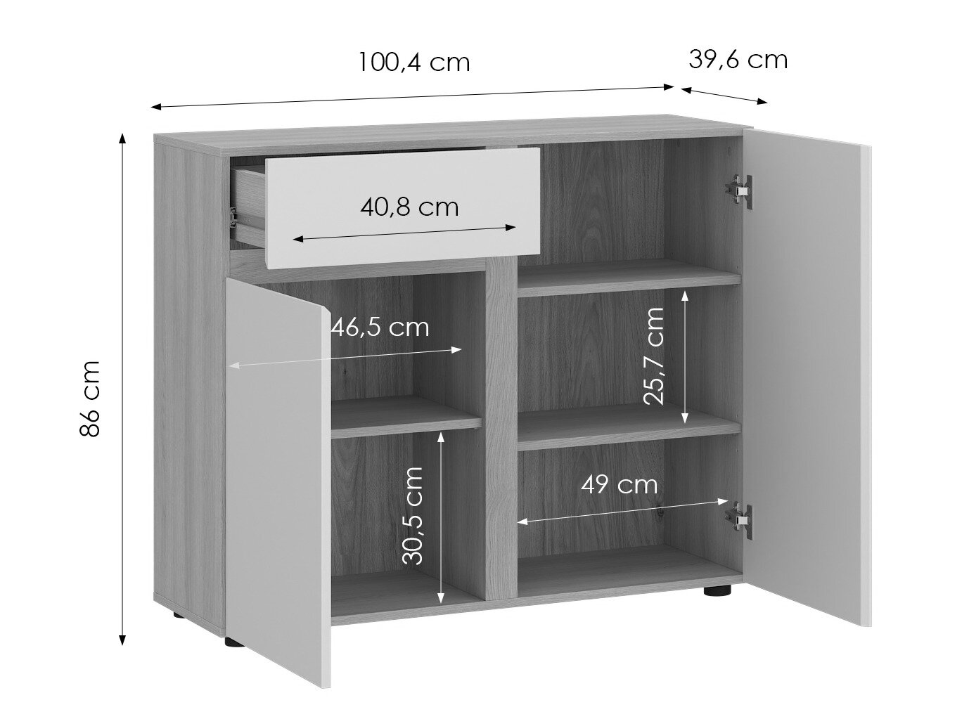 86 x 100.4 x 39.6; 86 x 200.7 x 39.6 cm