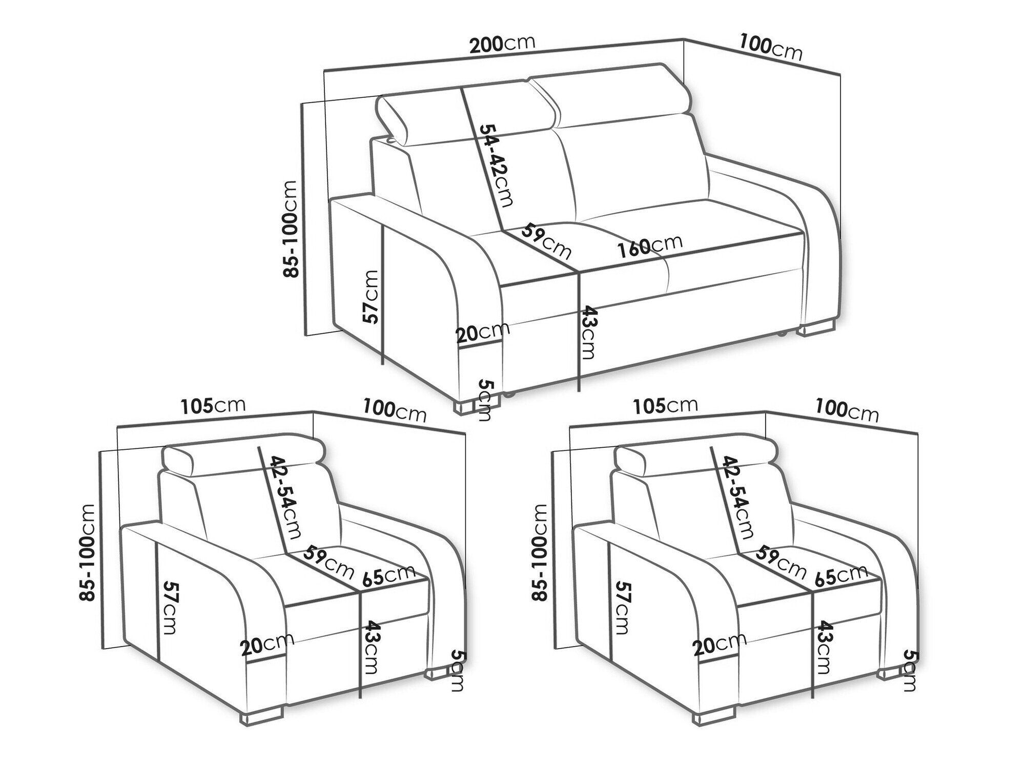 85 x 200 x 100 cm