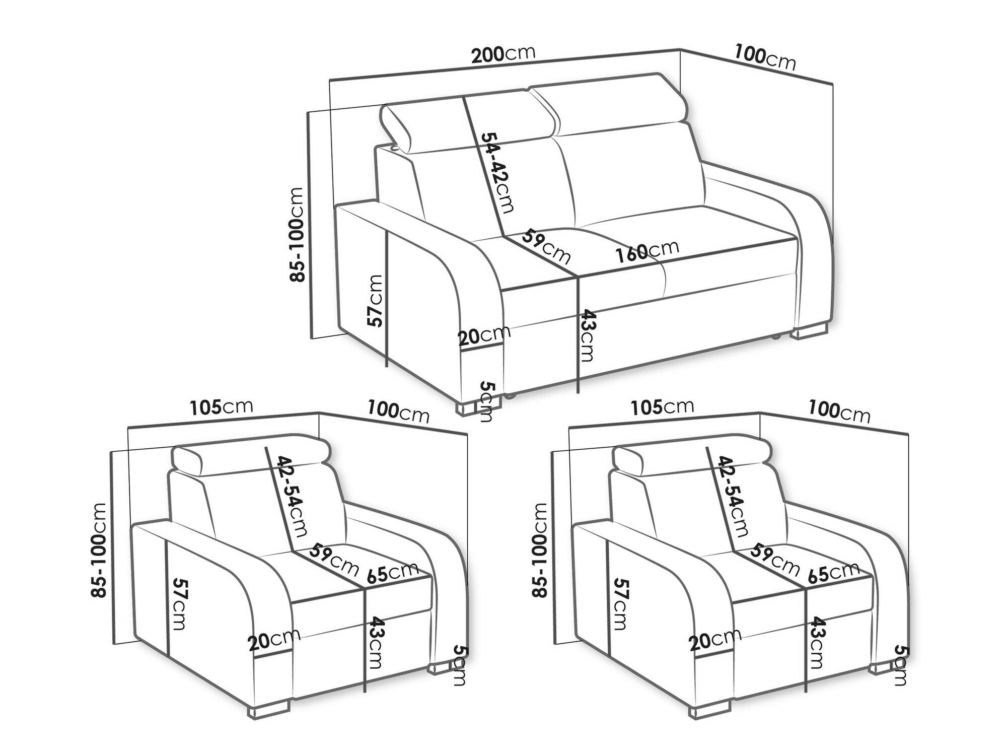85 x 200 x 100 cm