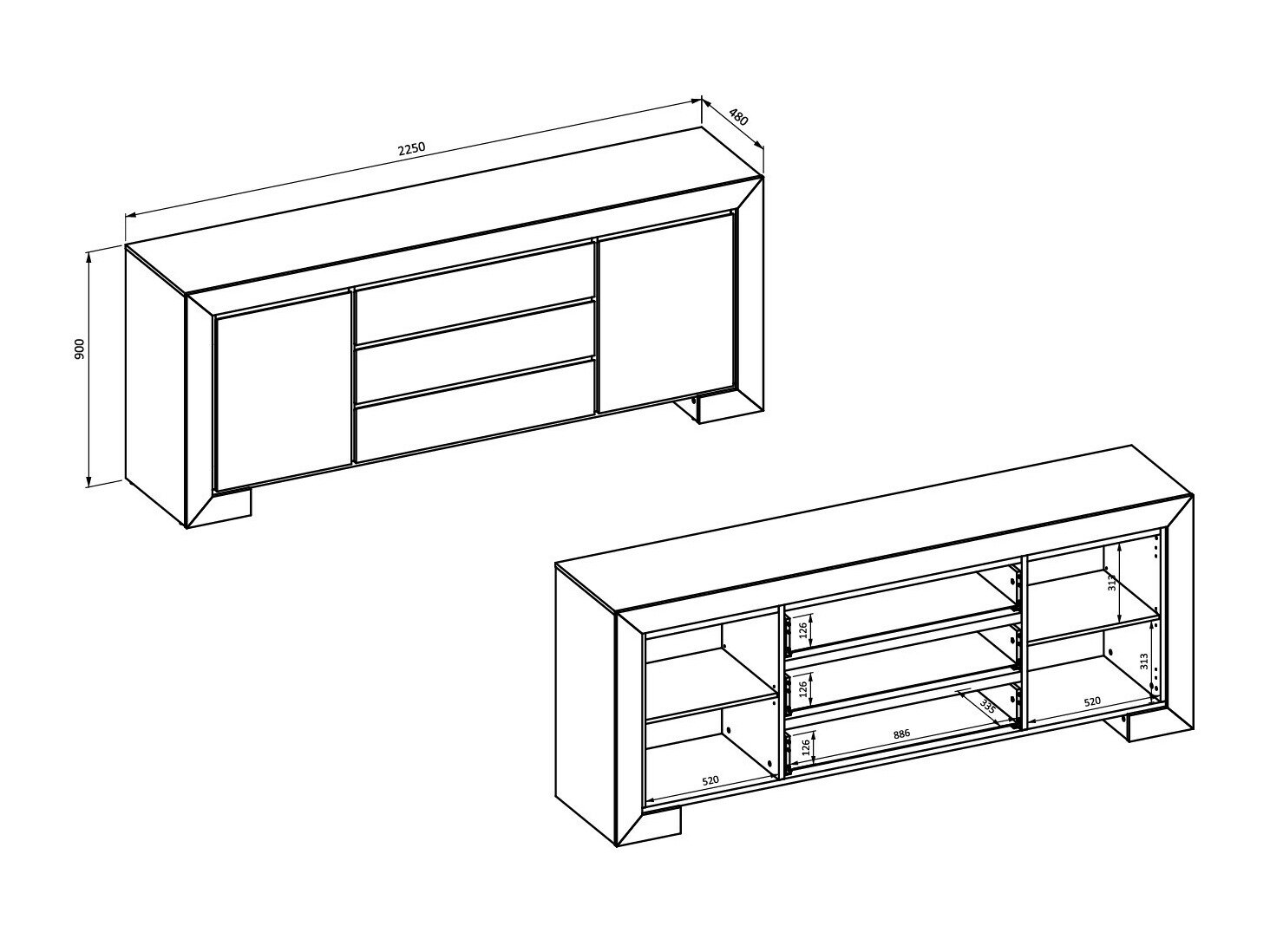 90 x 225 x 48 cm