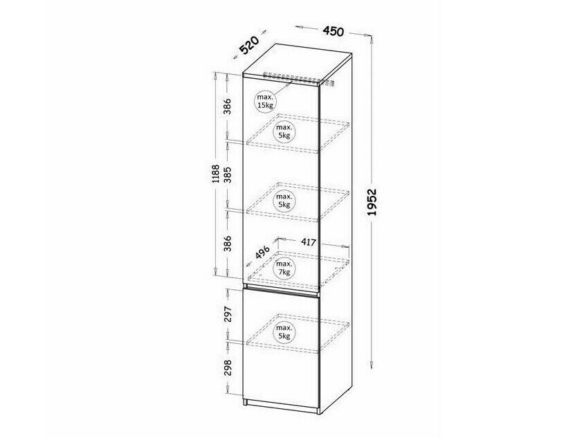 195.2 cm  45 cm  52 cm
