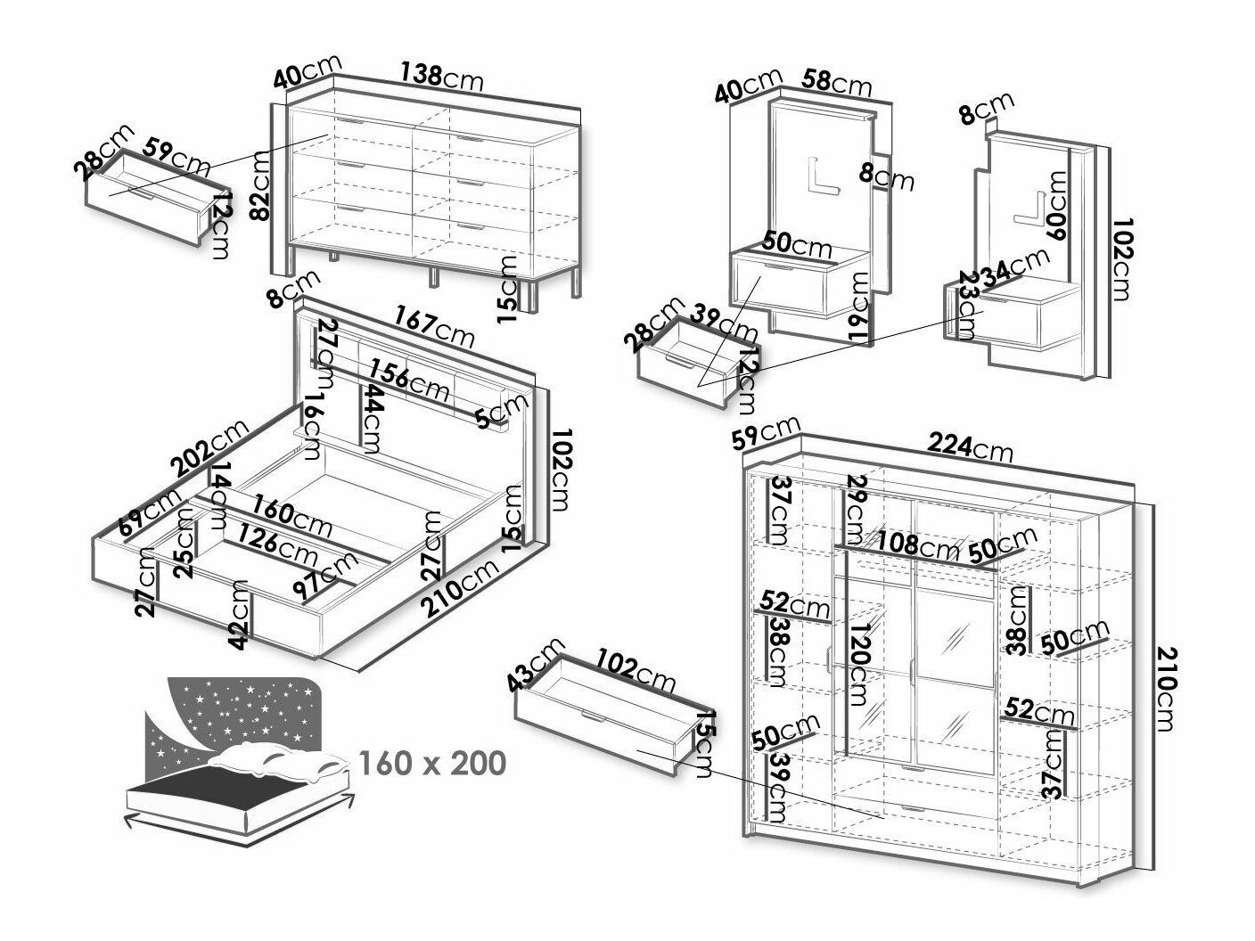 - 160 x 200 cm