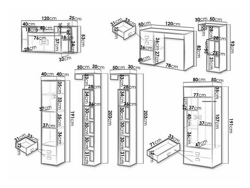 191 x 40 x 40; 203 x 50 x 30 cm