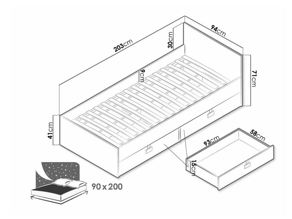 - 90 x 200 cm