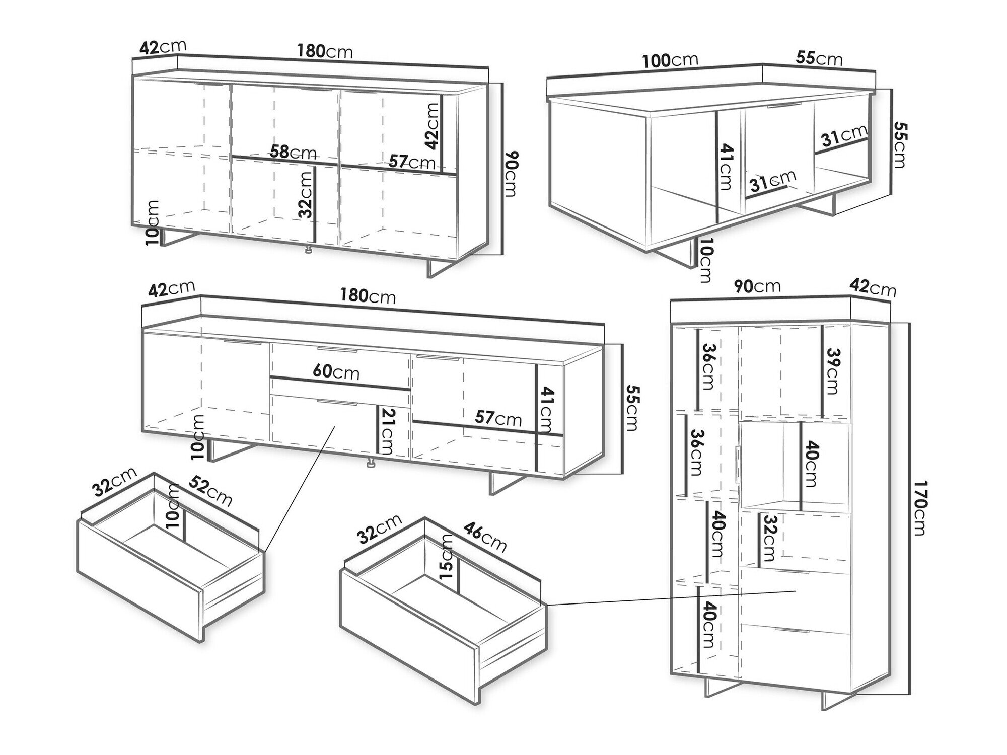 55 x 180 x 42 cm