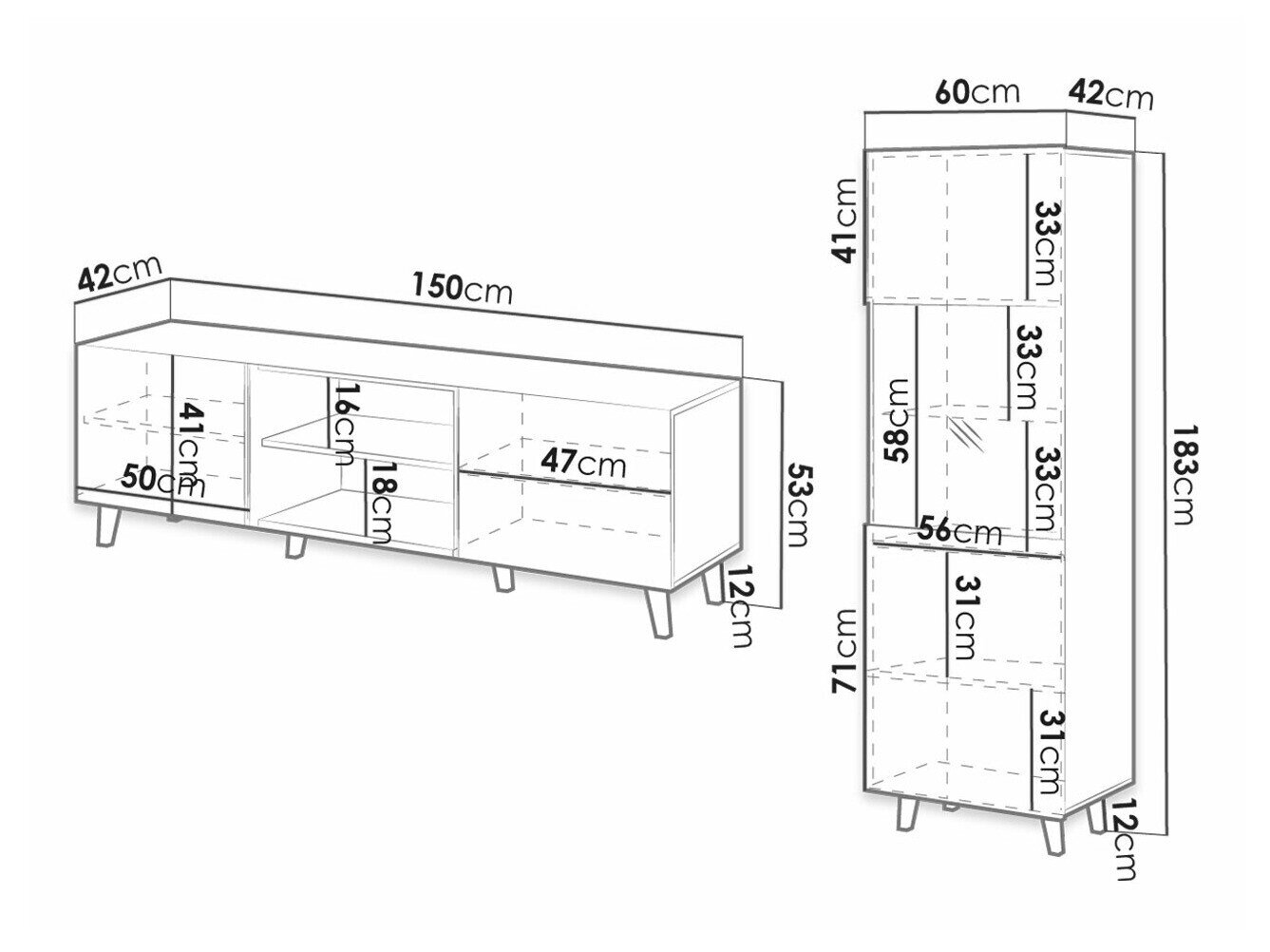 53 x 150 x 42 cm