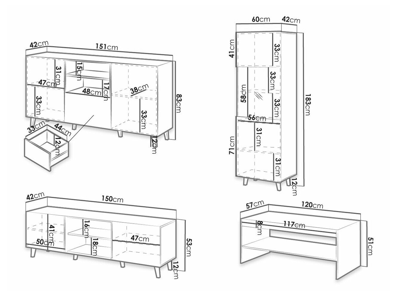 83 x 151 x 42 cm