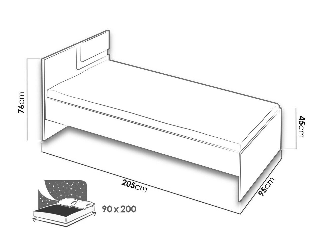 - 90 x 200 cm