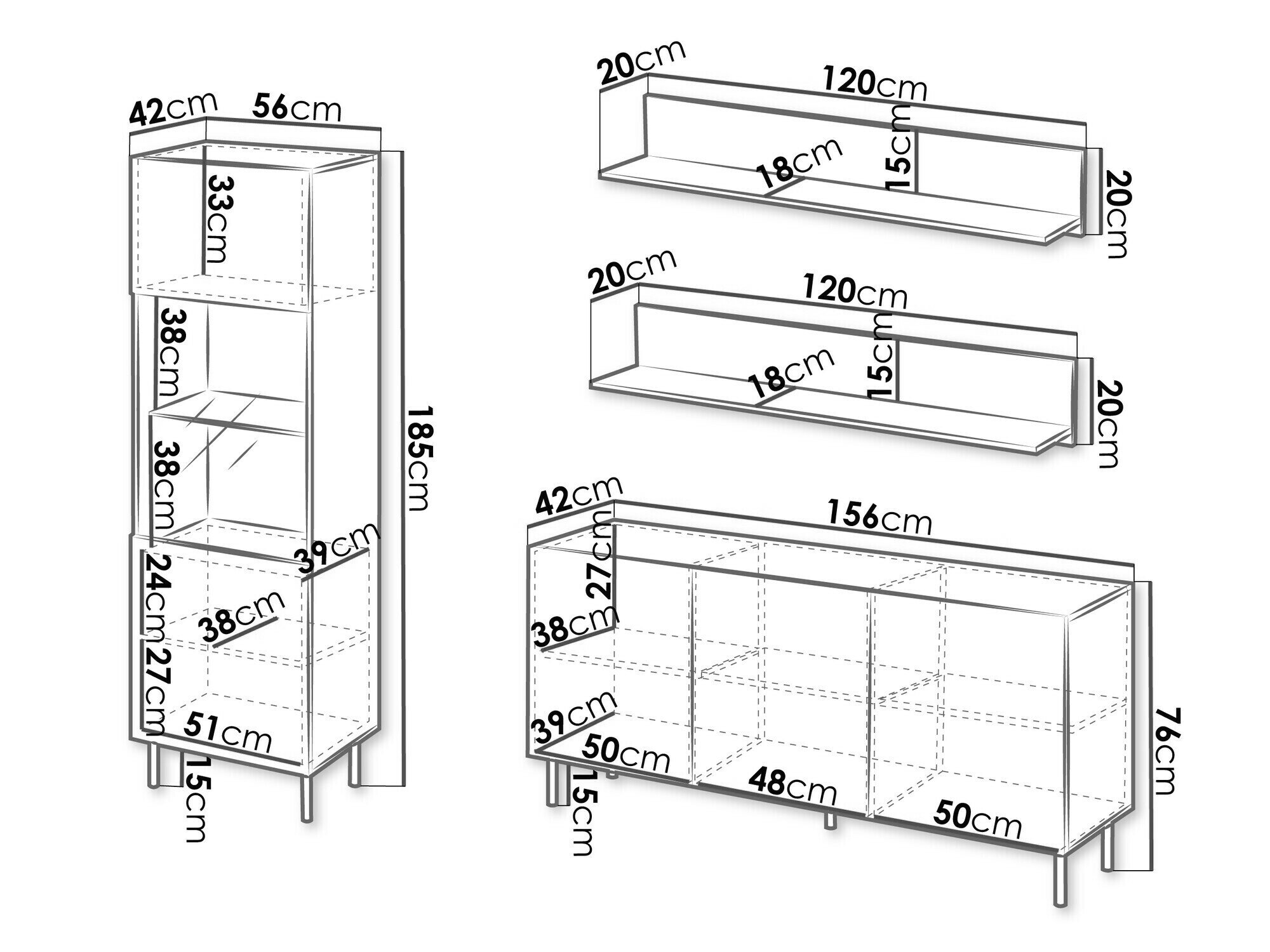 76 x 156 x 42 cm