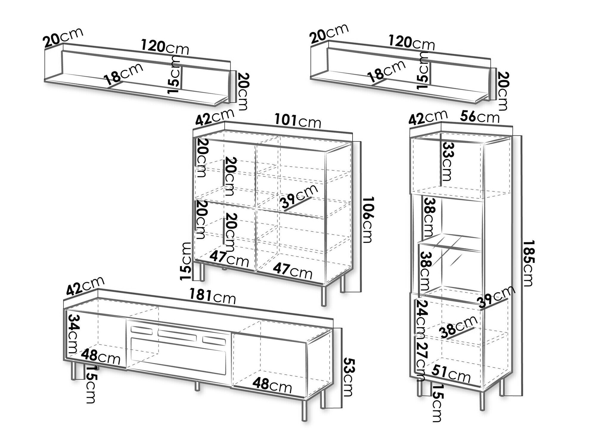 53 x 181 x 42 cm