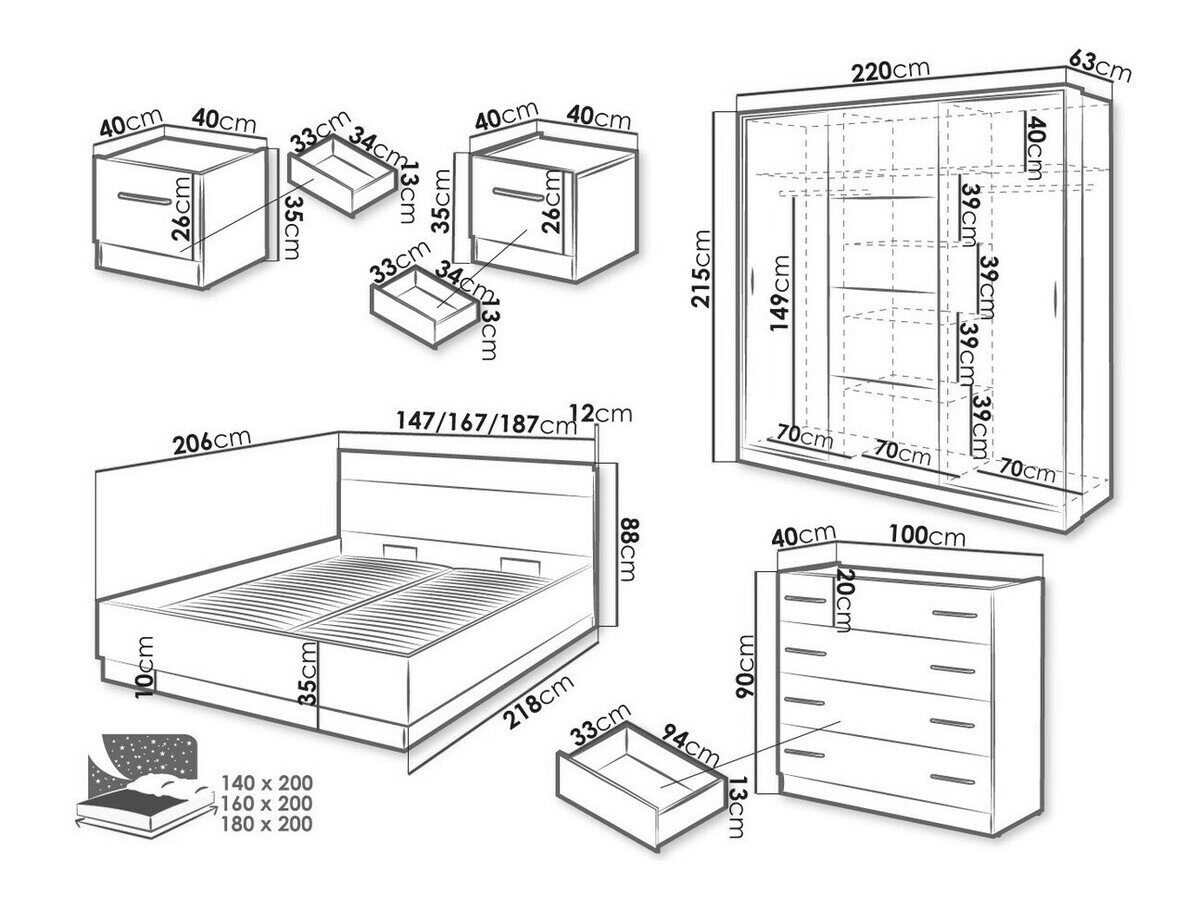 - 180 x 200 cm