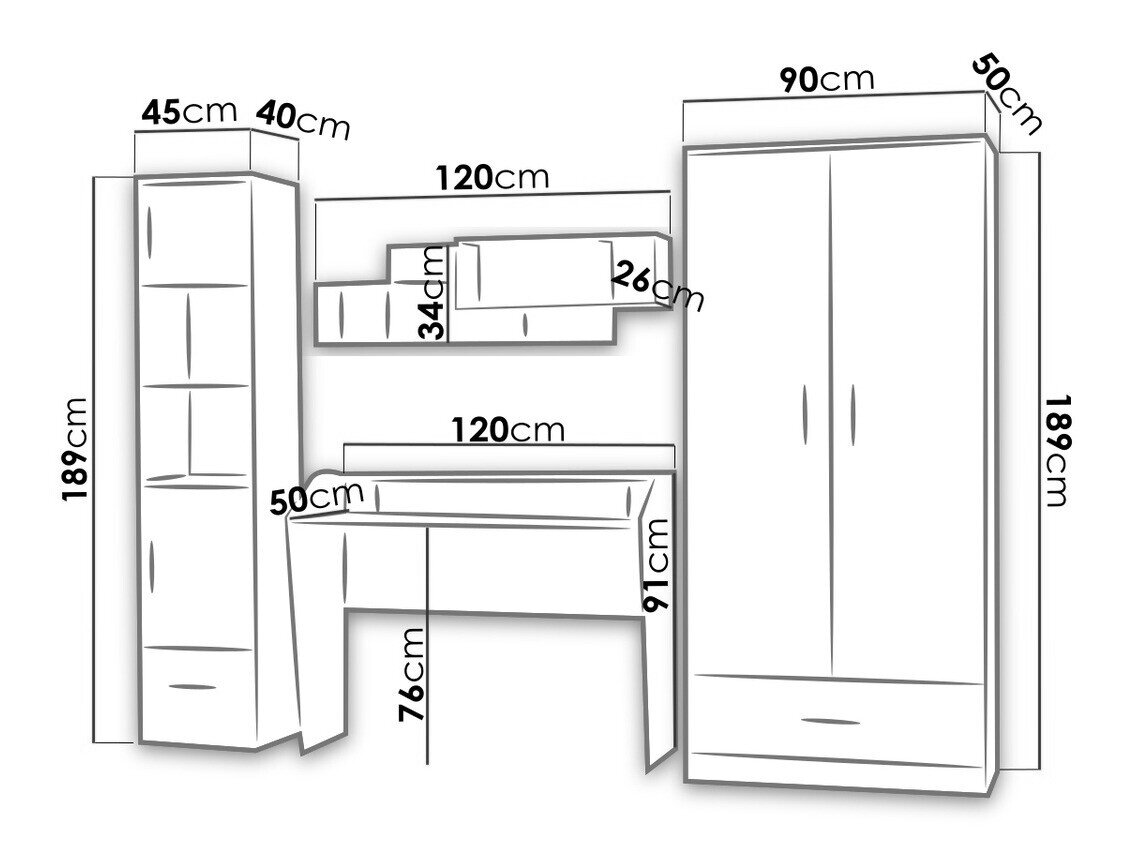 189 x 90 x 50 cm