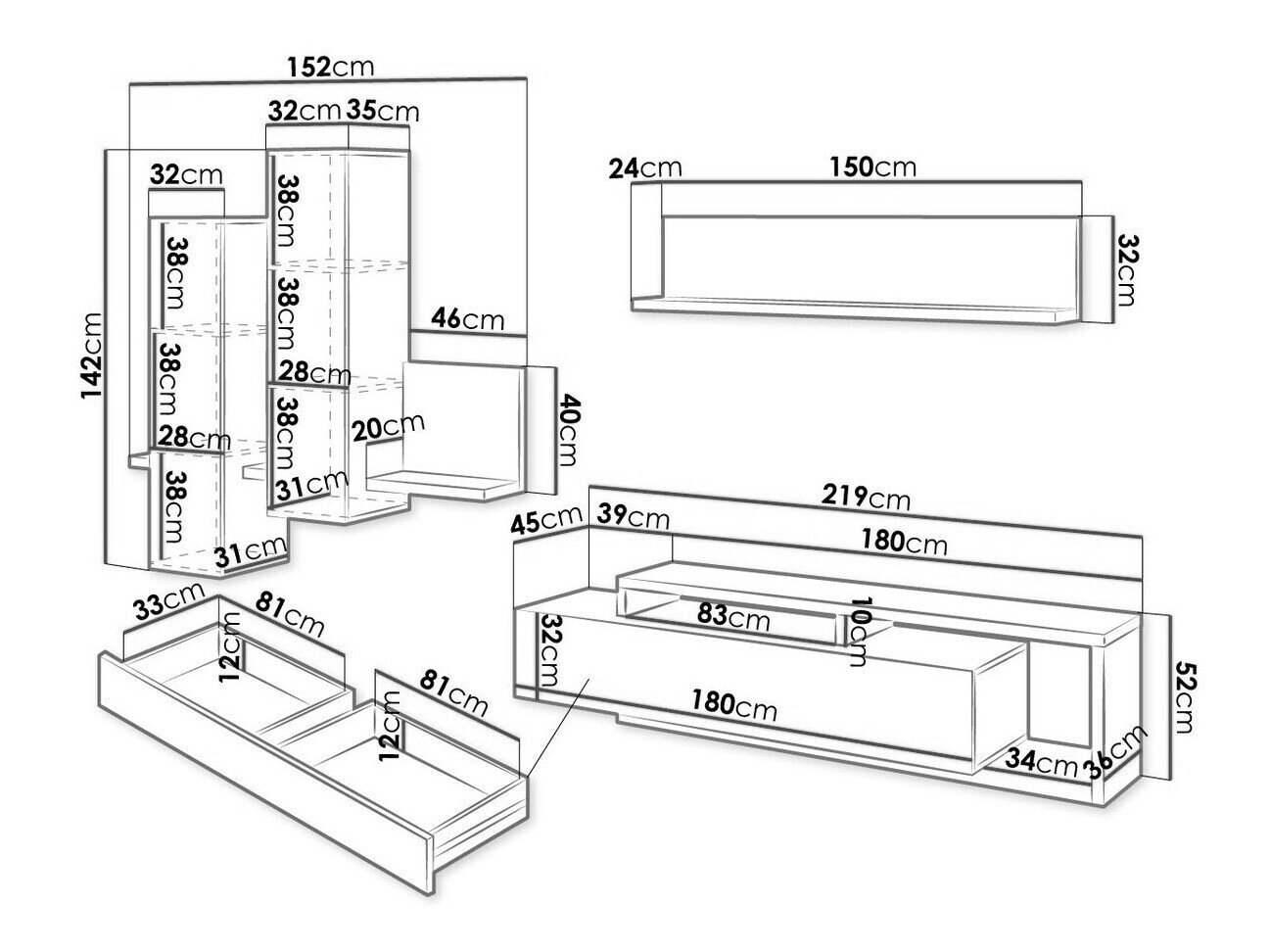 52 x 219 x 45 cm