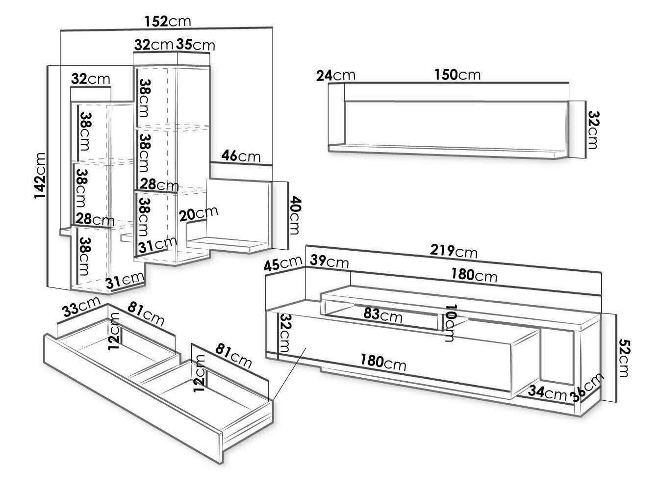 52 x 219 x 45 cm