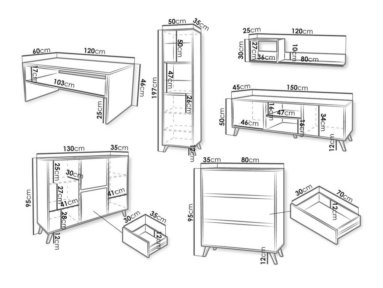 95 x 130 x 35; 95 x 80 x 35 cm