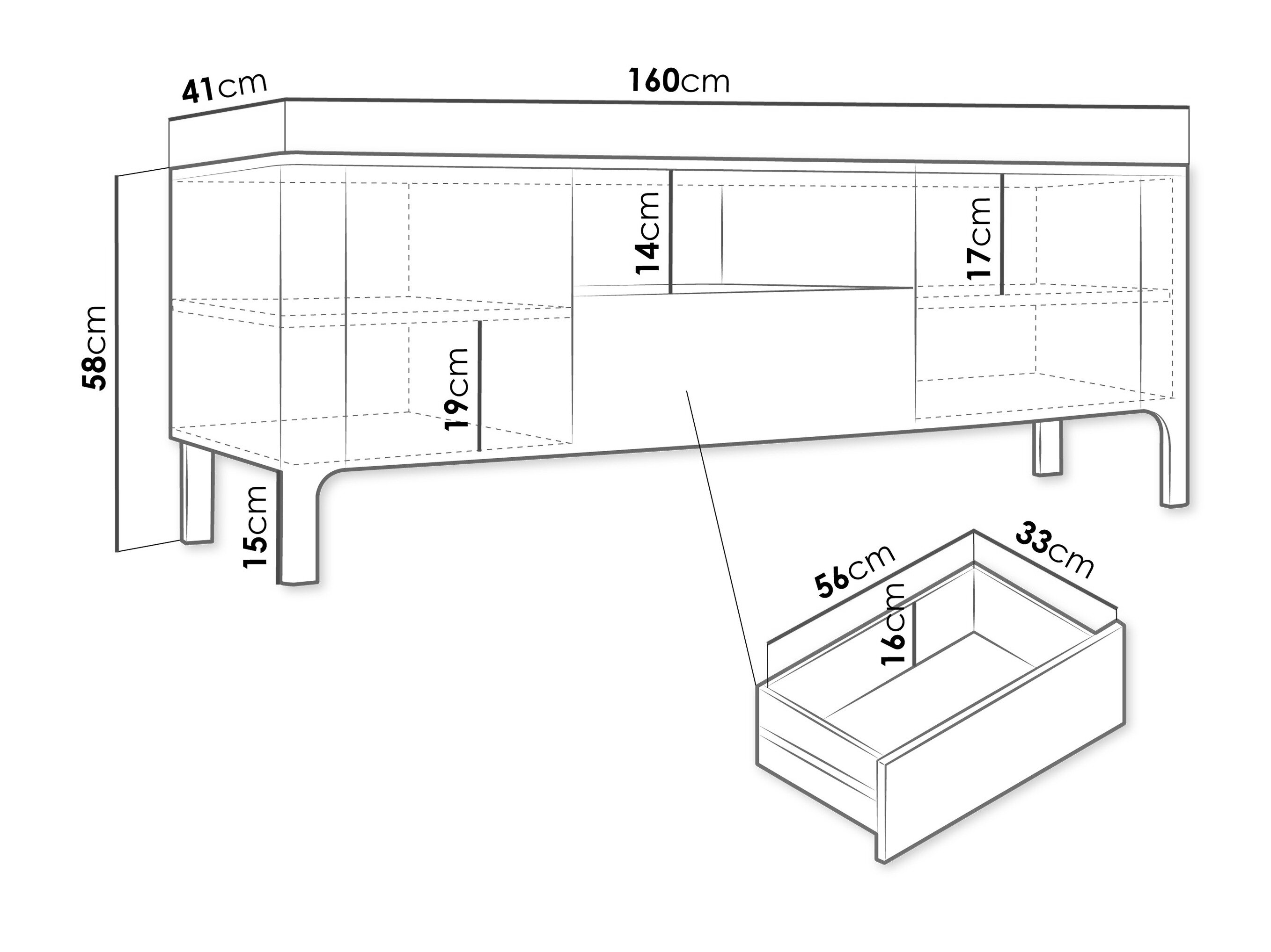 58 x 160 x 41 cm