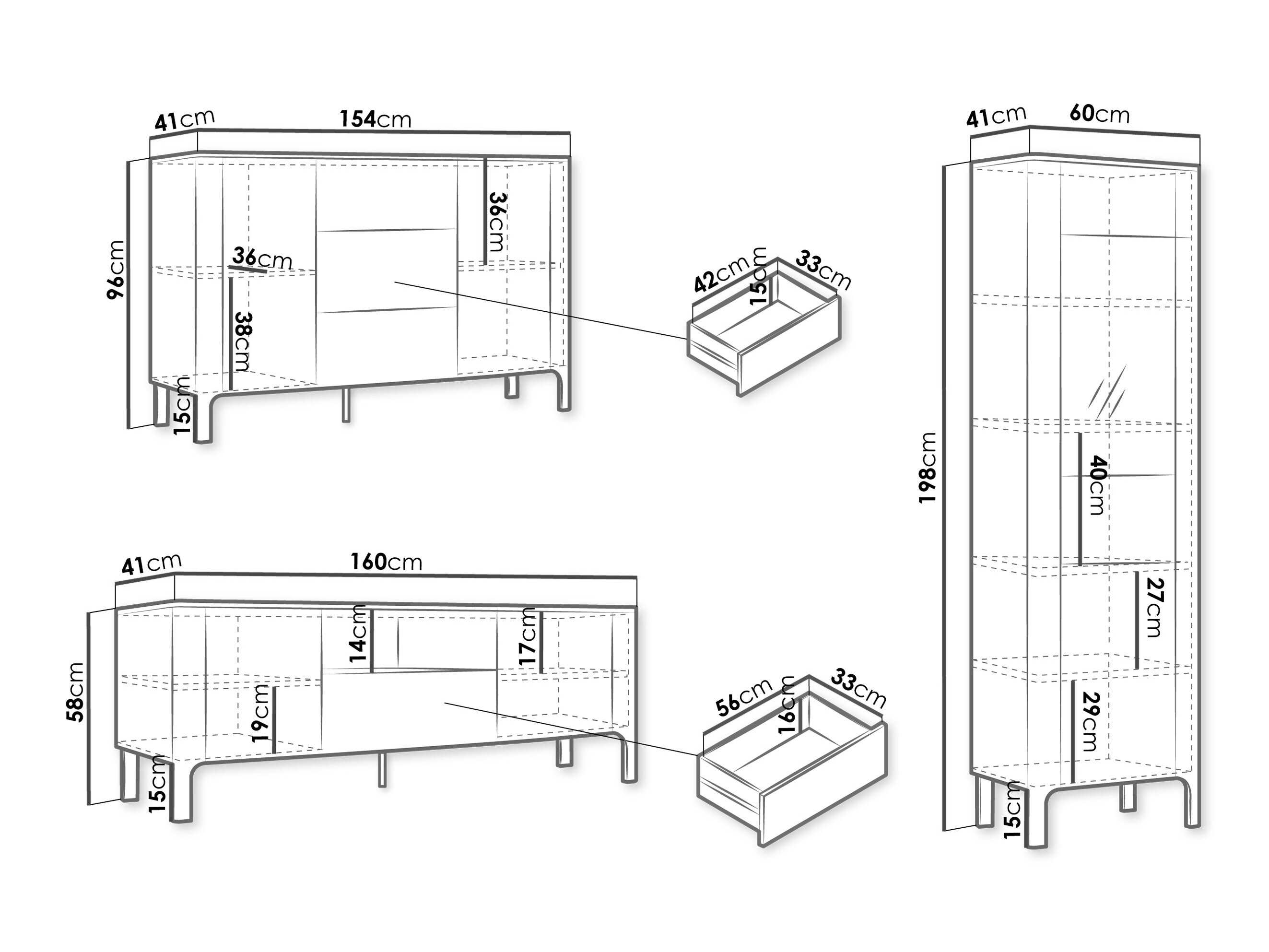 58 x 160 x 41 cm