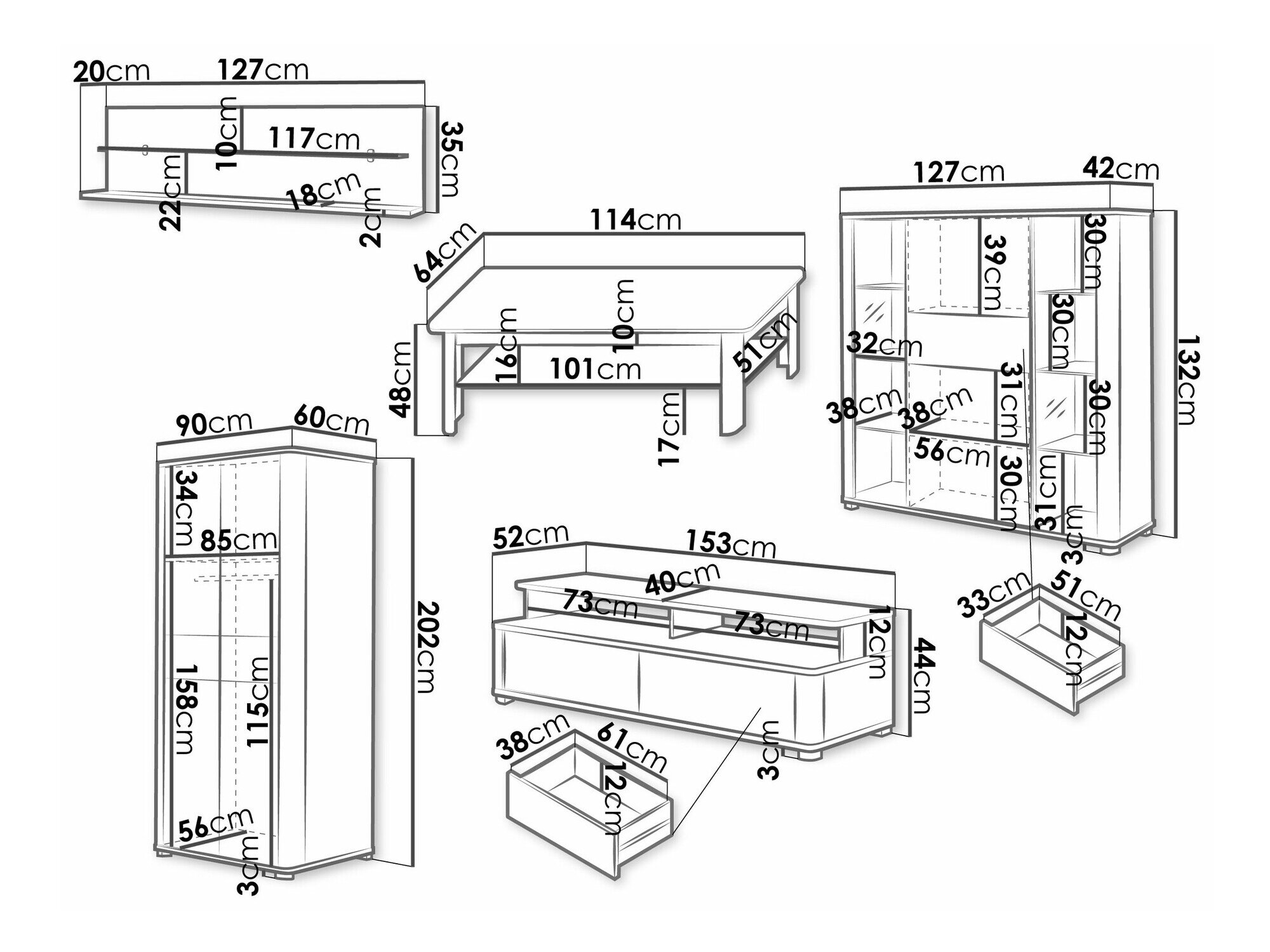 48 cm  64 cm  114 cm