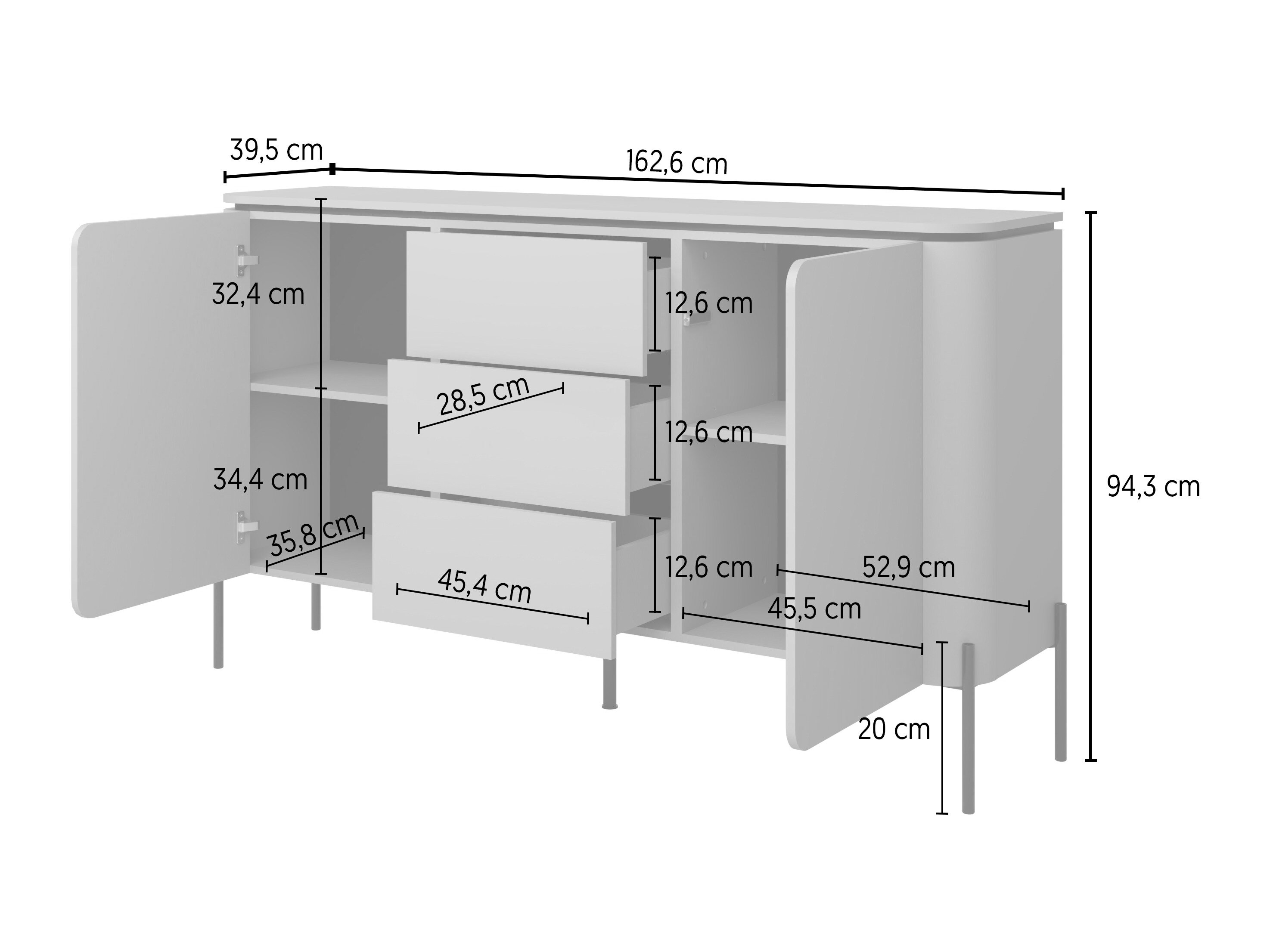 94.3 x 162.6 x 39.5 cm