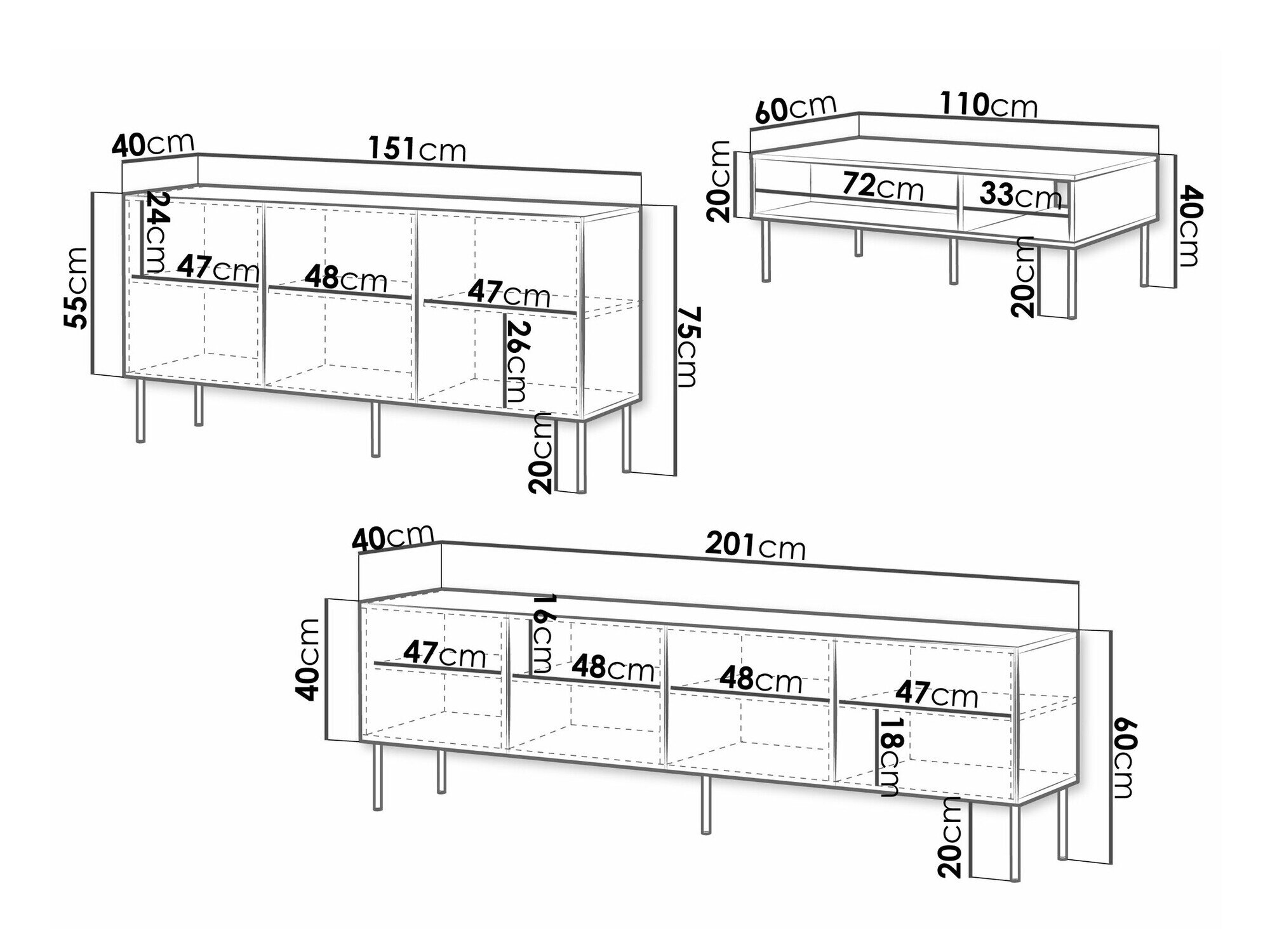 TV-bord dimensioner: