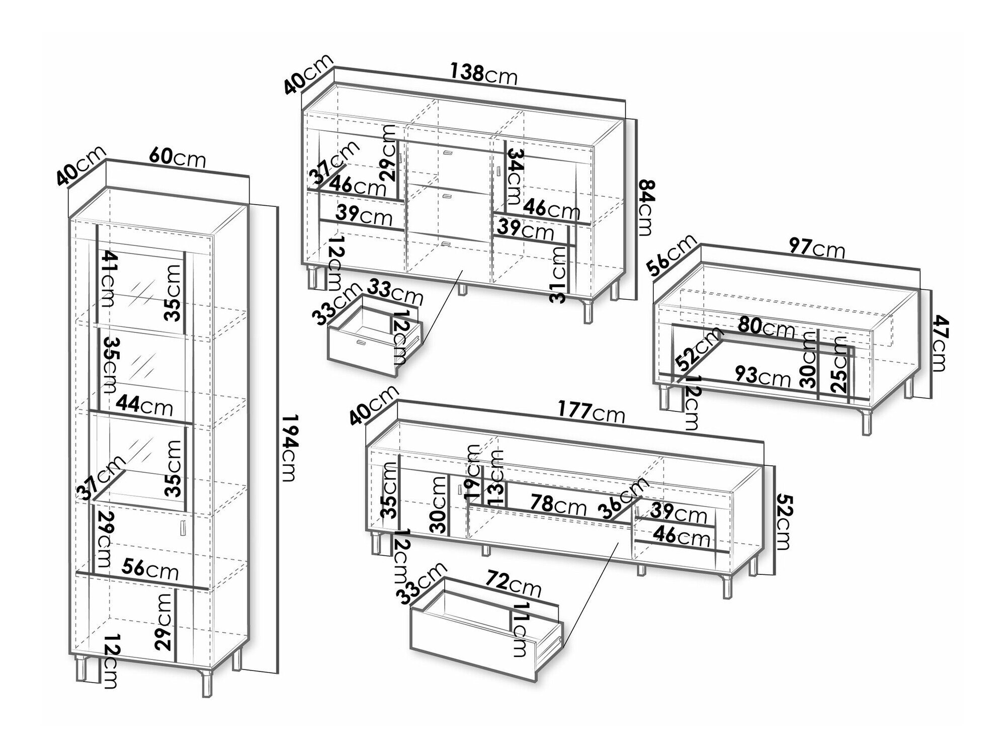52 x 177 x 40 cm