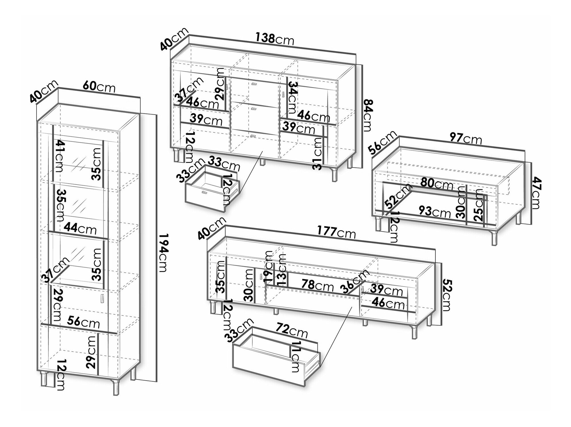 52 x 177 x 40 cm